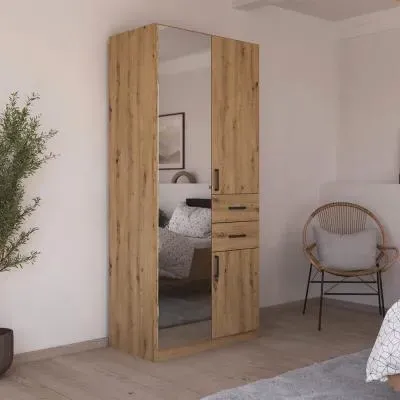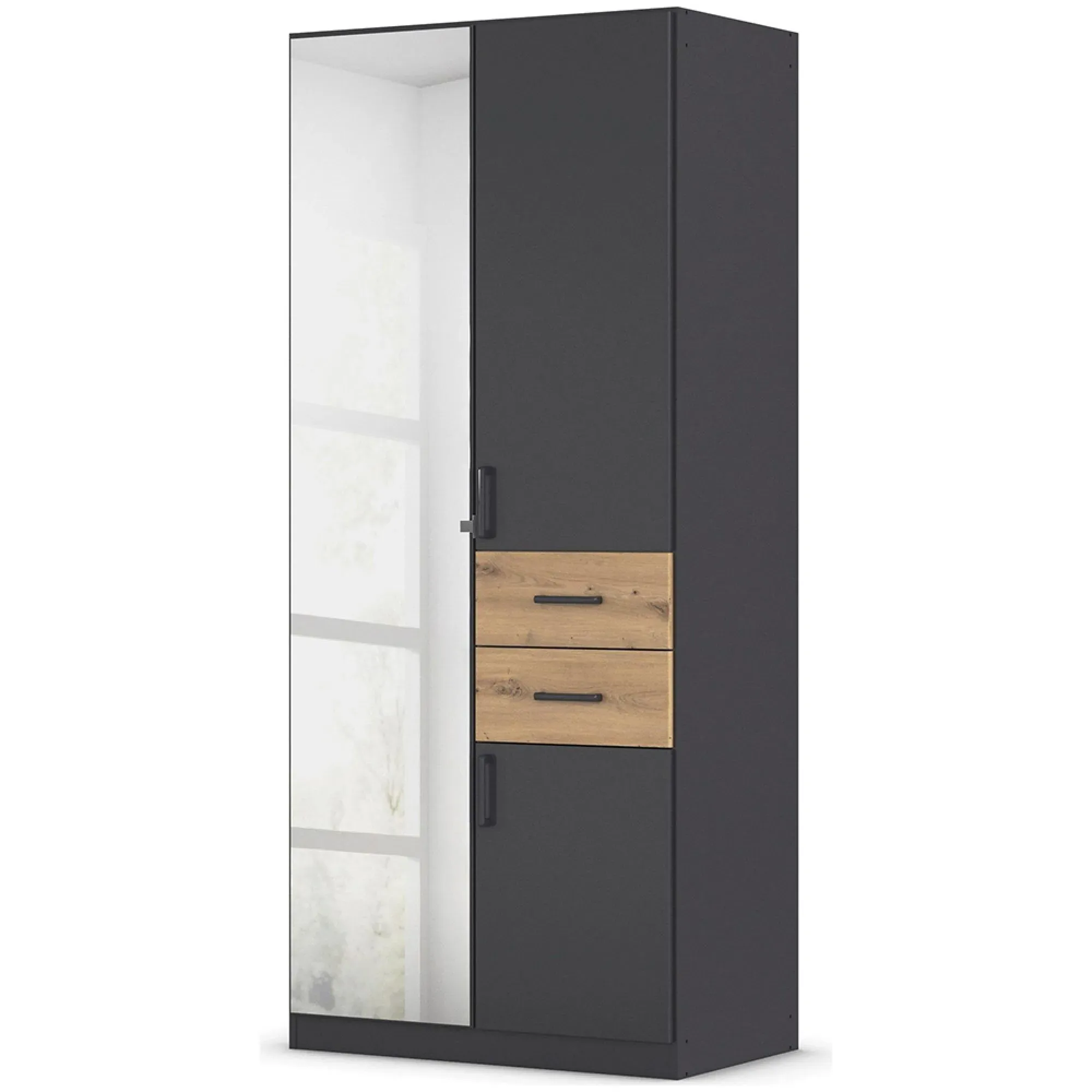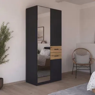 Rauch Maika 91cm 3 Door Wardrobe - H 197cm - Metallic Dark Grey and Artisan Oak - 31P0/ AG516, available to buy online or at Choice Furniture Superstore UK on stockist sale price. Get volume - discount with fast and Free Delivery.