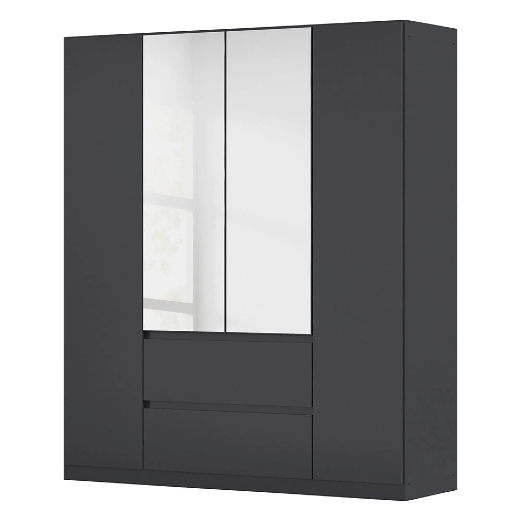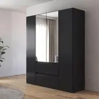 The Mainz Plus wardrobe delivers comprehensive storage with its four-door design and practical drawer. Its alpine white and white high gloss finish creates a clean, bright appearance, while the generous interior space organizes clothing efficiently. The drawer provides convenient storage for accessories, and the durable construction supports everyday use.