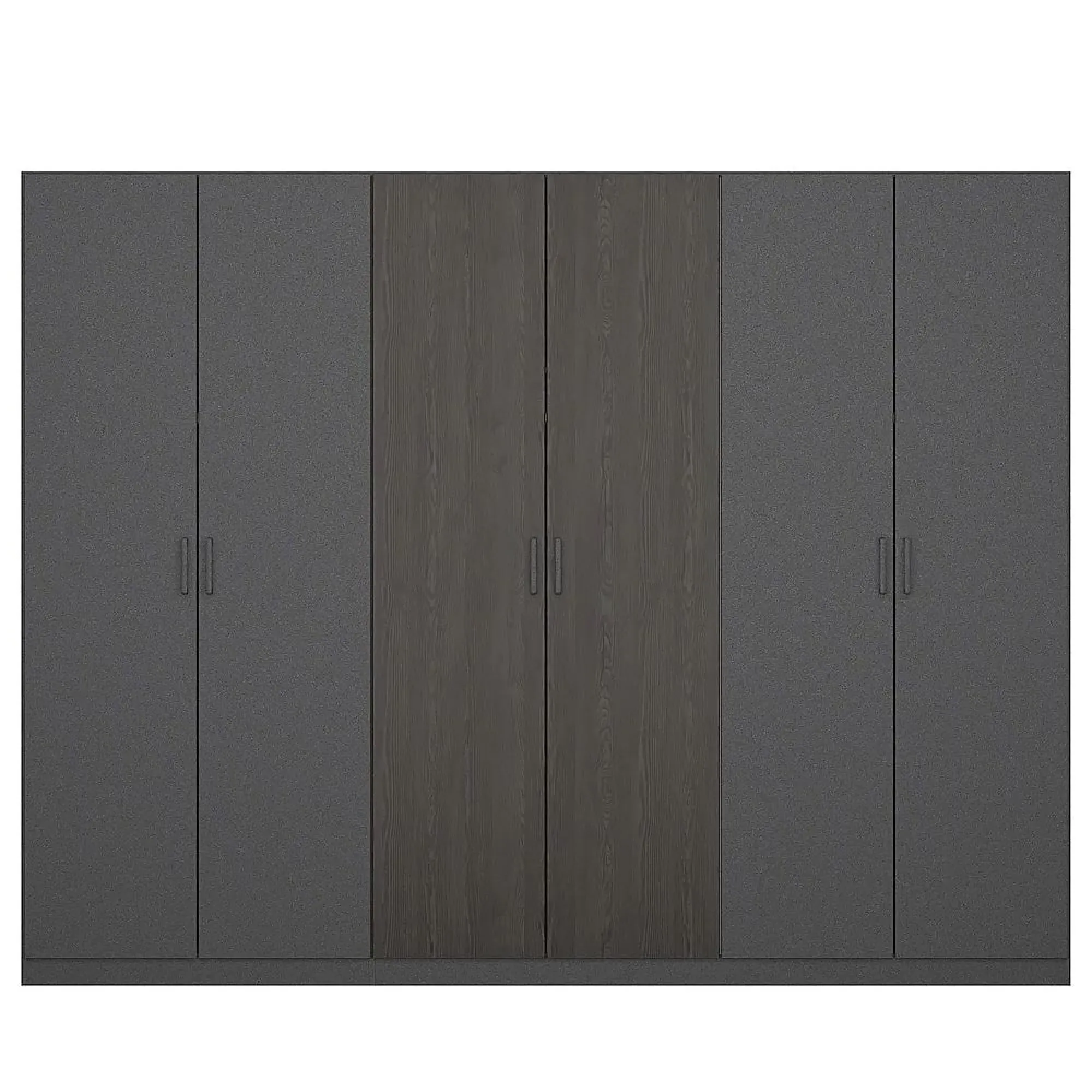 The Miro wardrobe delivers extensive organization with its six-door configuration, blending alpine white and artisan oak materials. Its thoughtfully designed compartments maximize storage capacity for various wardrobe essentials, while the light and wood combination maintains a timeless appeal. The smooth white surfaces are easy to maintain, and the oak detailing provides natural warmth and texture.