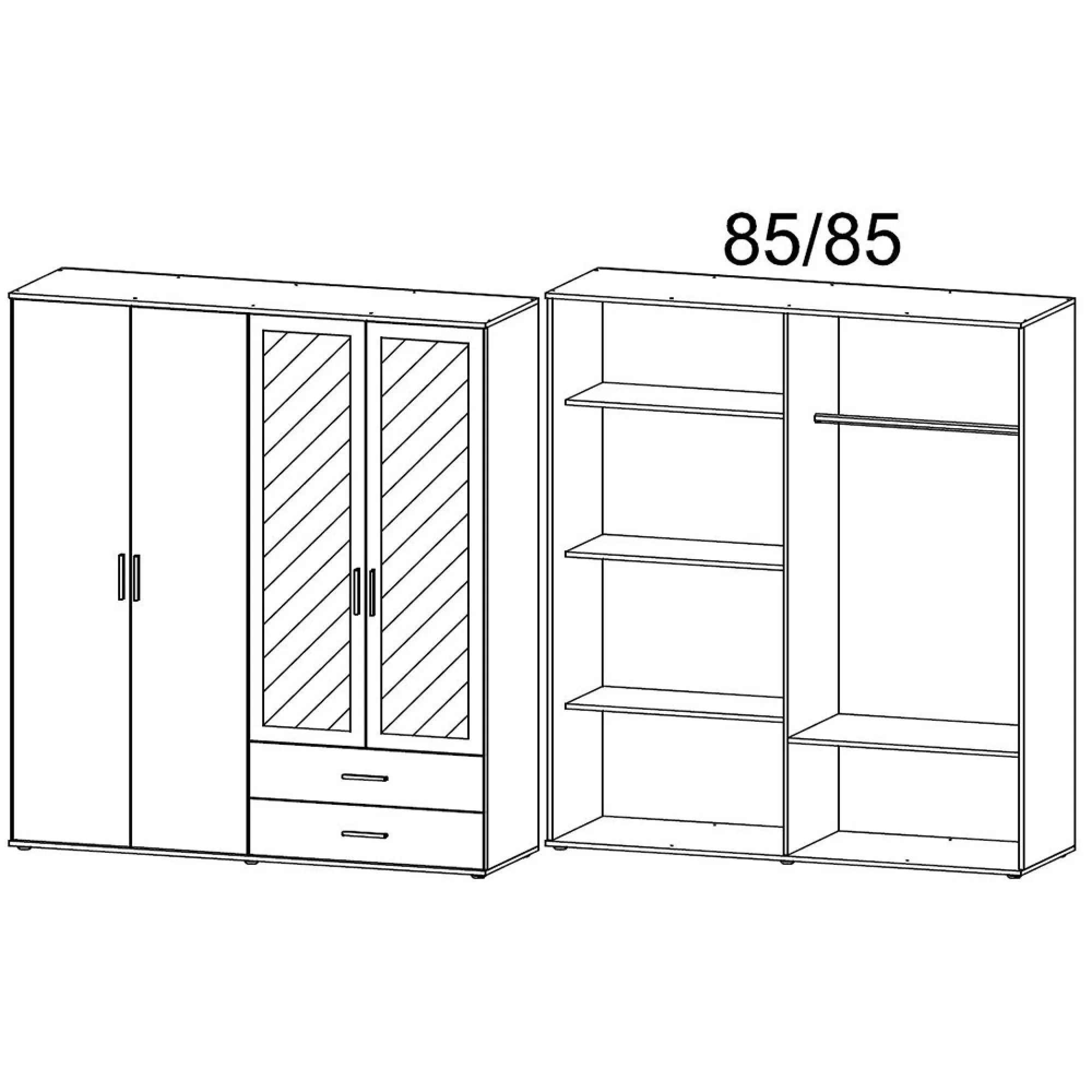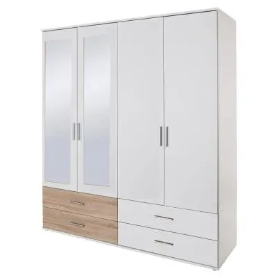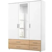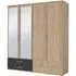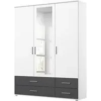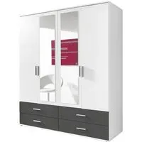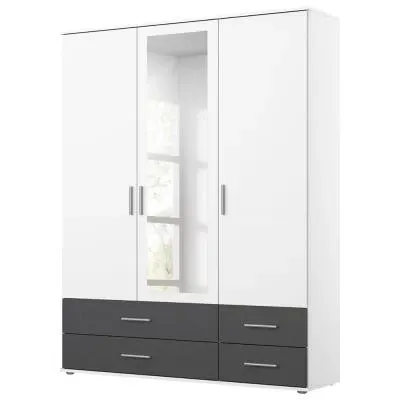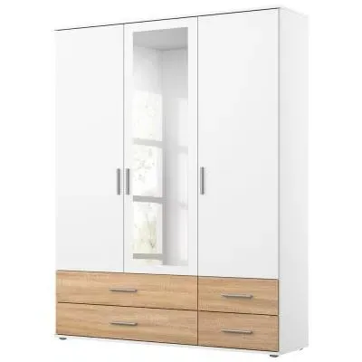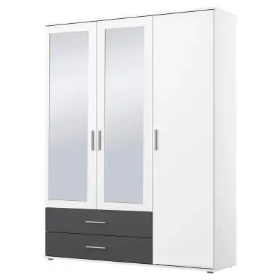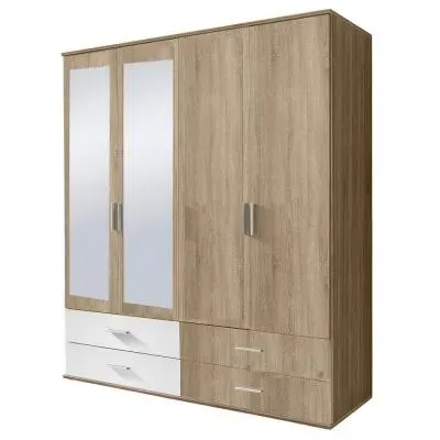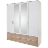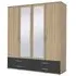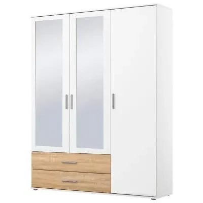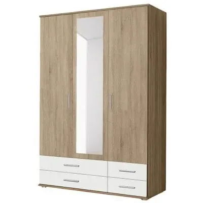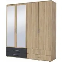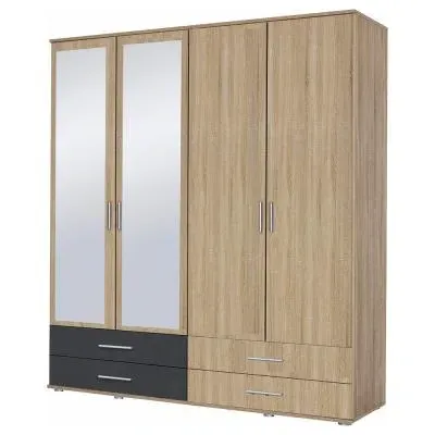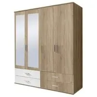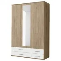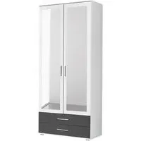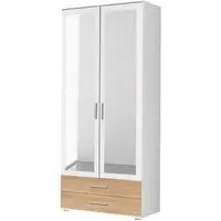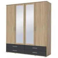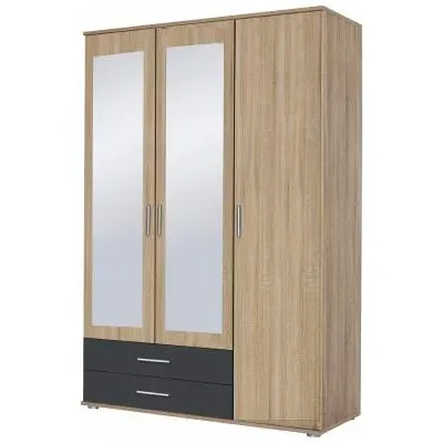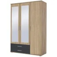 The Rasant Combi Wardrobe offers practical storage with its 2-door configuration featuring both hanging rail and shelving compartments. Its contemporary finish combines Sonoma Oak with Metallic Dark Grey accents for a sophisticated appearance. The compact design maximizes storage efficiency, while the quality hardware ensures smooth door operation.