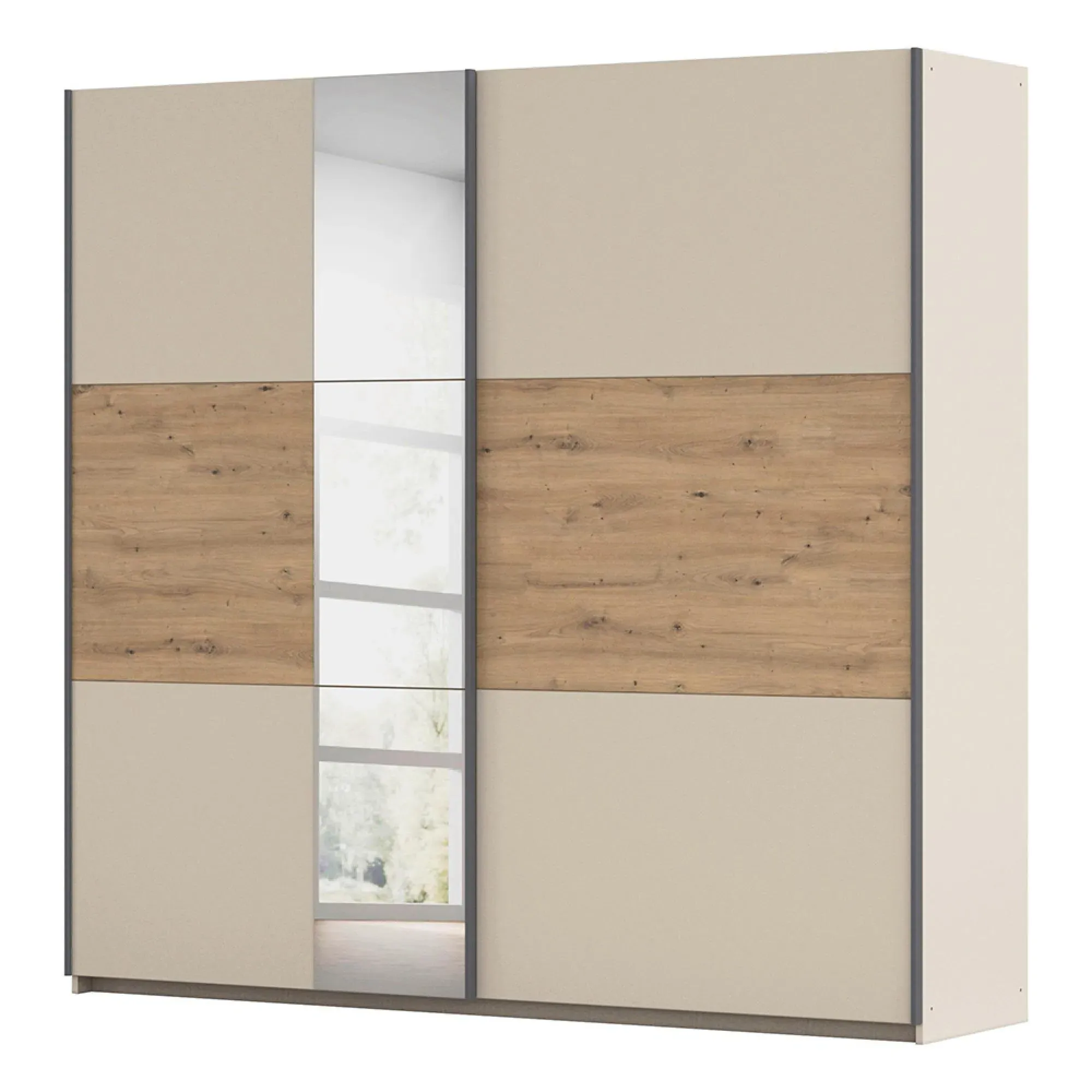 Rauch Sajo 218cm 2 Door Sliding Wardrobe - Champagne and Metallic Dark Grey - 4211/ AG082, available to buy online or at Choice Furniture Superstore UK on stockist sale price. Get volume - discount with fast and Free Delivery.