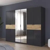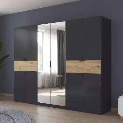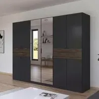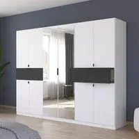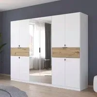 The Ticao wardrobe combines extensive storage with its 10-door configuration, featuring a spacious 271cm width. Its combi design provides versatile organization options with both hanging space and shelving compartments. The Alpine White finish adds a clean, bright appearance that complements various interior styles.