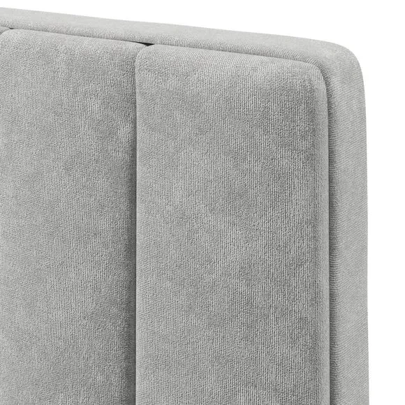 The headboard offers classic elegance with its vertical stripe design, crafted from tweed upholstery. Its foam padding provides comfortable support while accentuating the striped pattern. The floor standing construction ensures compatibility with divan beds and ottomans, while the full height design adds substantial presence to any bed setup.