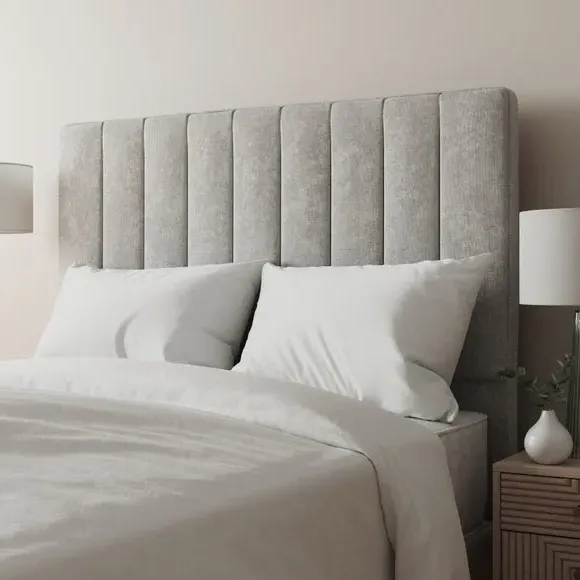 * Floor standing headboard* Stylish, tweed upholstery* Comfortable and padded* Compatible with divan beds and ottomans* Choice of fabric colours* Made in the UK This tweed vertical stripe headboard is a full height floor standing headboard with a classic elegant design. This luxury headboard is crafted with foam padding, further accentuating the striped design and is ideal for relaxing against in bed while reading watching television.