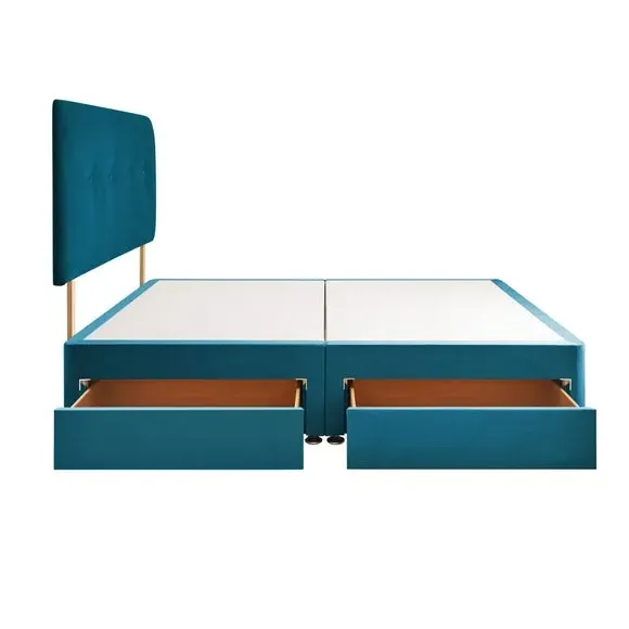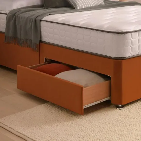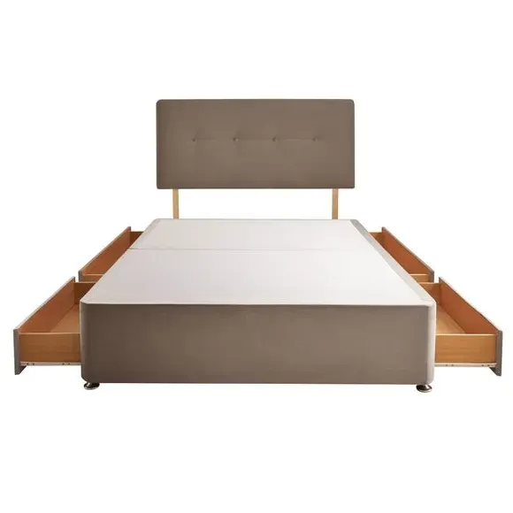 The divan bed combines comfort with its 800 pocket spring mattress and velvet headboard. Its Mirapocket technology provides individual spring support, while the zoned system ensures even weight distribution and spinal alignment. The medium-firm mattress features hypoallergenic filling layers with a soft knitted cover, and the edge-to-edge support minimizes movement disturbance.