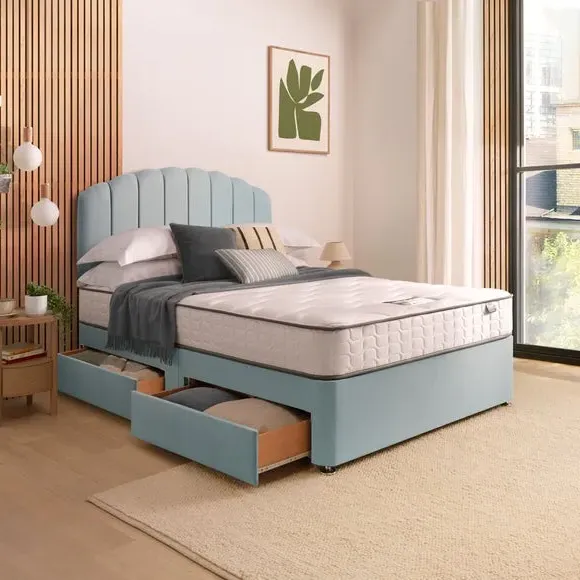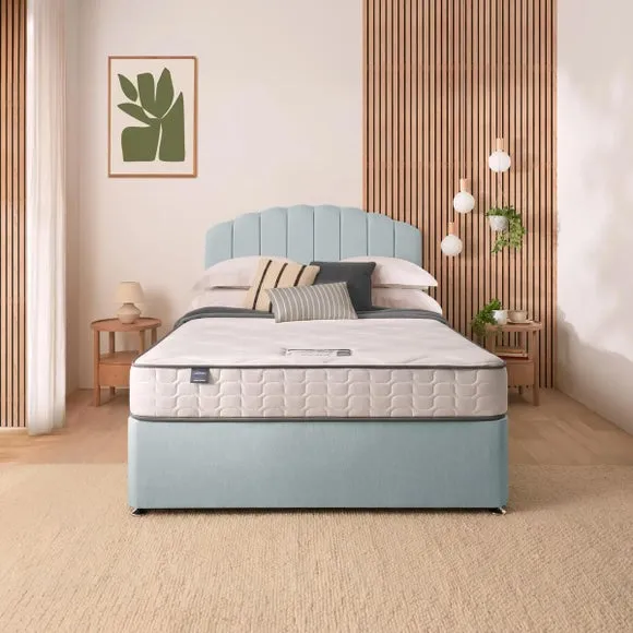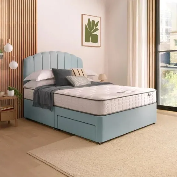 * Divan Bed* Bed Mounted Headboard* Includes Mattress* Soft, Fabric Upholstery This all-inclusive divan set seamlessly marries functionality and elegance, featuring a refined headboard, and an extraordinary 800 pocket mattress. Silentnight's cutting-edge Mirapocket technology takes centre stage, providing 800 individual pocket springs for unparalleled comfort, support, and pressure relief. The zoned Mirapocket support system ensures even weight distribution, promoting effortless movement and enhancing spinal alignment, while the edge-to-edge support creates a haven for an undisturbed night's sleep. The mattress's responsive pocket springs adapt to your body weight, delivering a luxurious blend of comfort and personalised support. Plump filling layers and a sumptuously soft knitted mattress cover add to the lavishness, with a hypoallergenic finish for peace of mind. The medium-firm comfort rating caters to those who transition between back and side sleeping positions. Please note, the mattress binding colour may differ slightly from image. This does not affect the quality or use of the final product.