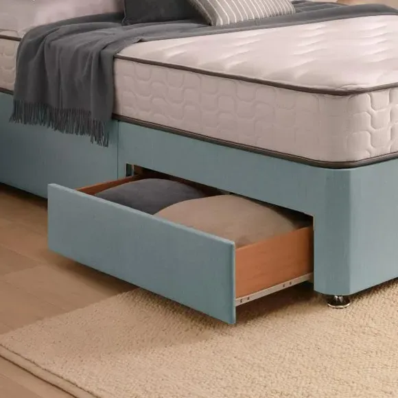 The divan bed combines comfort with its 800 pocket sprung mattress and fabric headboard. Its Mirapocket technology provides individual spring support, while the zoned system ensures even weight distribution and spinal alignment. The medium-firm mattress features hypoallergenic filling layers with a soft knitted cover, and the edge-to-edge support construction delivers undisturbed sleep.
