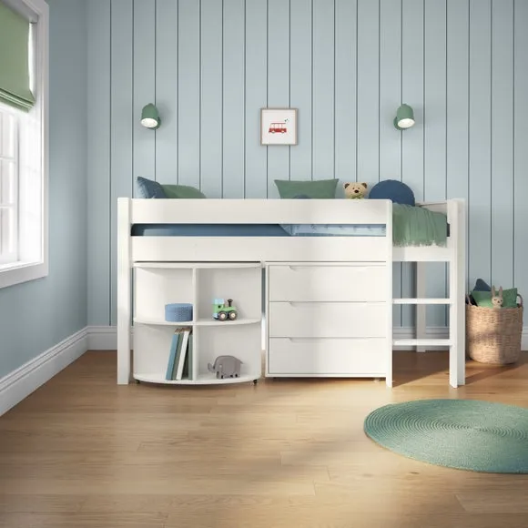 Home  /  Bedroom  /  Midsleeper Bed with Desk & Storage - White, Pine