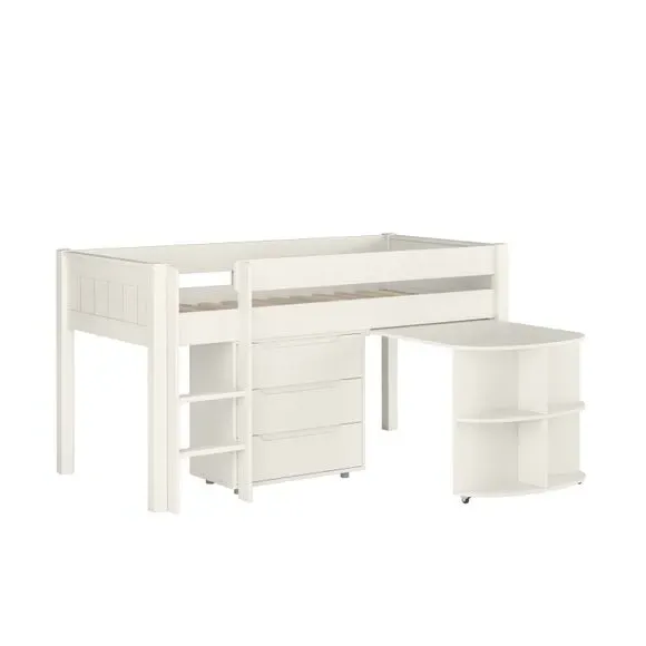 Midsleeper Bed with Desk & Storage - White, Pine