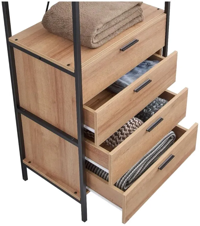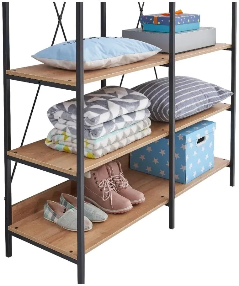 The Craven Open Wardrobe features three fixed shelves alongside open hanging space for versatile storage. Its Riviera Oak finish adds natural character, while the shelf configuration provides organized storage for folded garments. The open design allows easy visibility and access, and the solid construction delivers lasting durability.