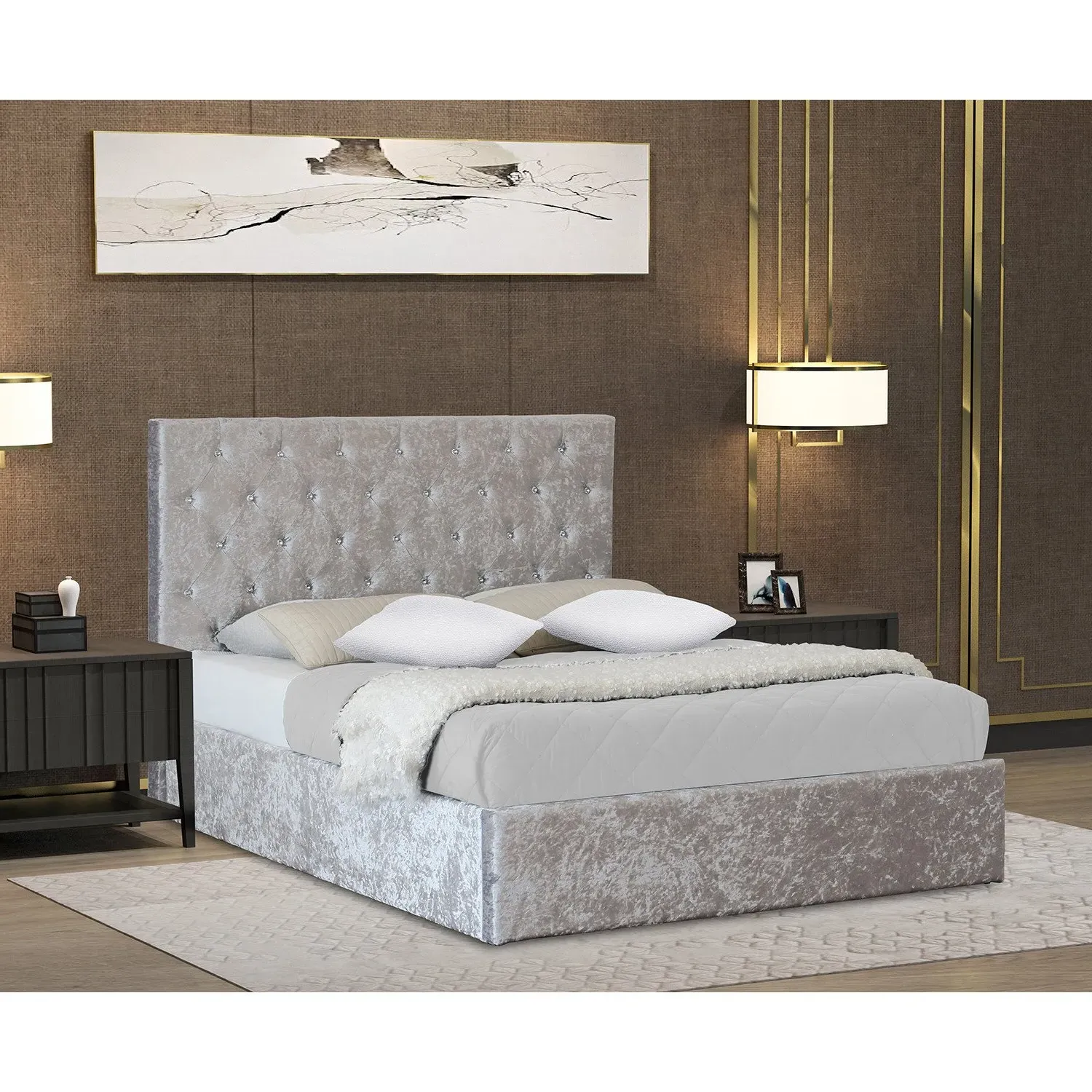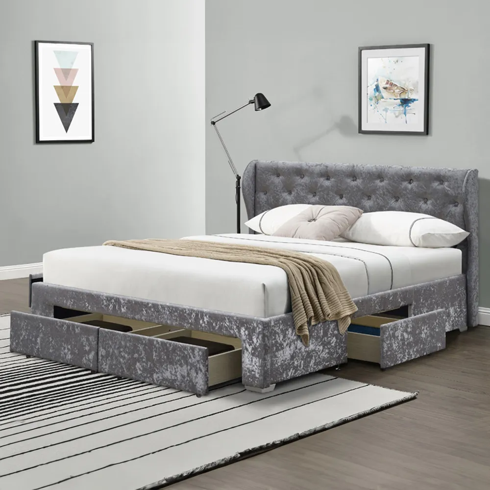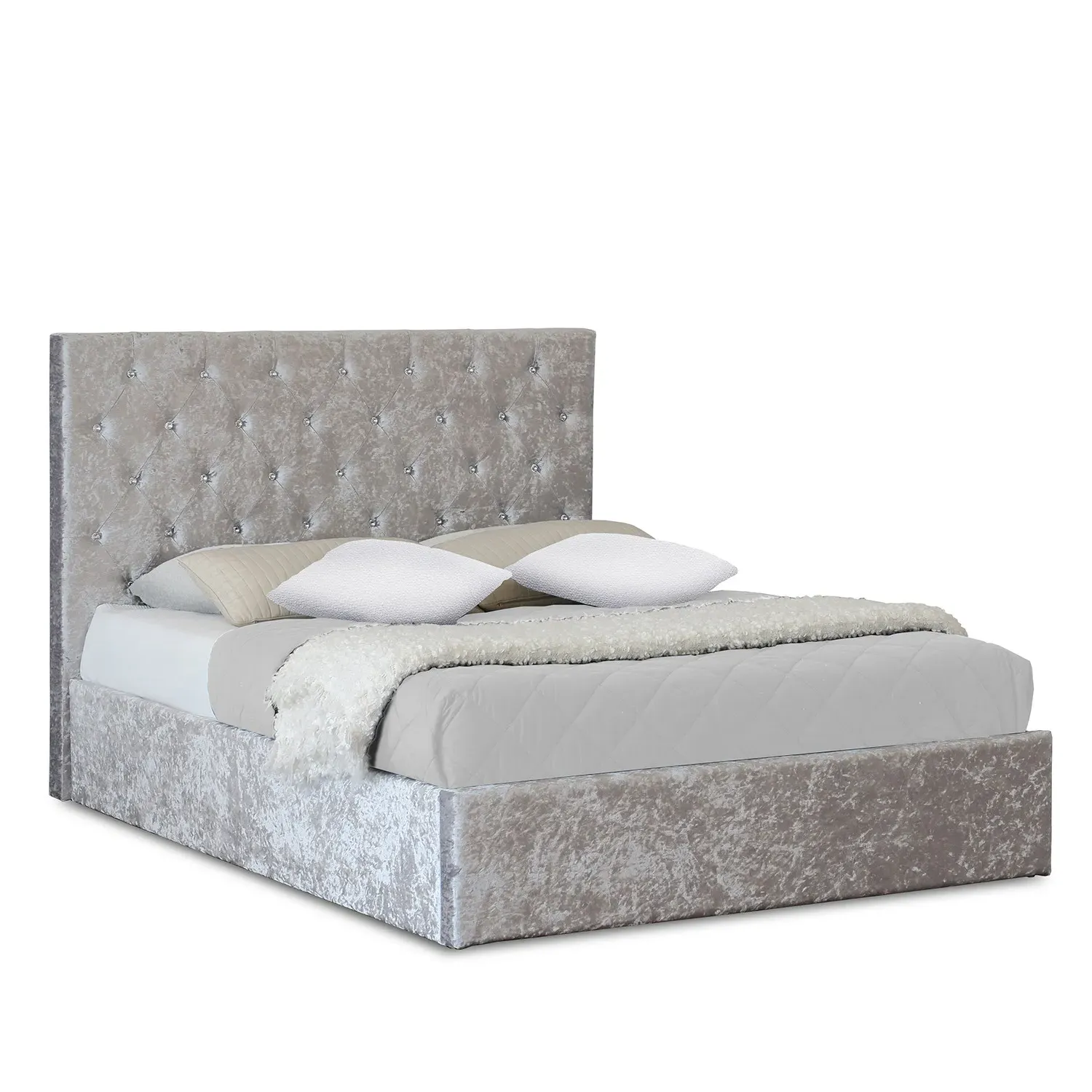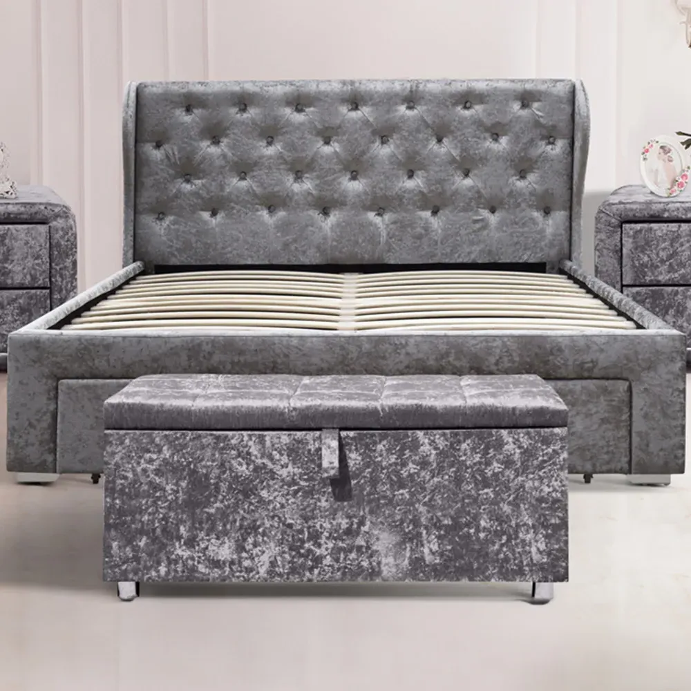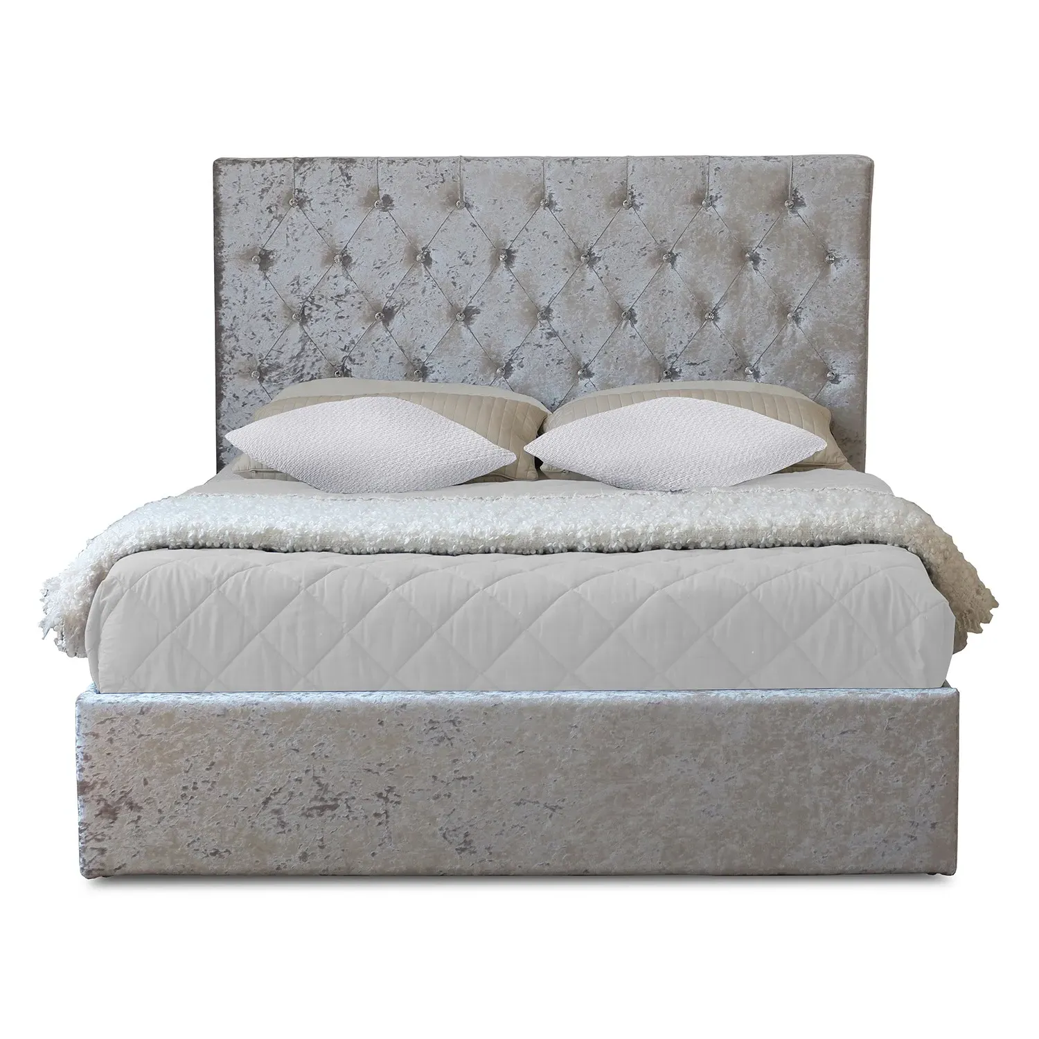 Add charm and comfort to your sleep sanctuary with the Brooklyn King Size Cream Crushed Velvet Bed Frame. Upholstered in a soft crushed velvet fabric, this bed frame exudes elegance and sophistication. The high padded panelled headboard with stitching detail adds a touch of glamour to the bed, while the low footboard offers a clean and contemporary look. The sturdy metal frame and posture-sprung slatted base ensure that this bed is not only beautiful but also practical and comfortable. Its minimalist design is perfect for those who appreciate simplicity and understated luxury. Whether you're looking to upgrade your bedroom decor or simply want to add a touch of sophistication to your sleeping space, this bed frame is the perfect choice. Its soft, plush upholstery will make you feel like you're sleeping on a cloud, while the sturdy frame ensures that you'll enjoy a restful night's sleep for years to come. So why wait? Order today and experience the perfect combination of style, comfort, and durability.