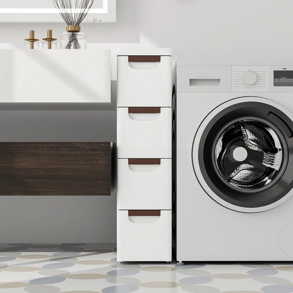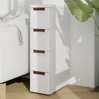 The narrow storage cabinet offers three drawers with rolling functionality, crafted from durable PP material. Its directional wheels provide smooth mobility across different surfaces, while the waterproof construction resists moisture and stains. The compact design delivers versatile storage solutions for tight spaces.