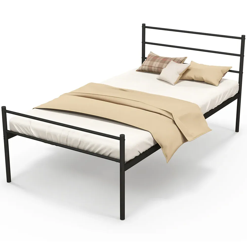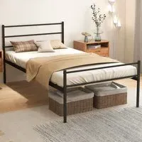 Elevate your bedroom's charm and functionality with the Costway Single Black Metal Bed Frame. Expertly crafted from a heavy-duty metal frame, this bed offers a robust 220kg weight capacity, ensuring superior stability for a peaceful night's sleep. The elegant headboard, adorned with sphere finials and exquisite patterns, adds a timeless aesthetic that complements any decor. Additionally, the raised platform creates a convenient under-bed storage space, perfect for keeping your room tidy and organized. With non-slip foot pads and easy-to-follow instructions, this bed frame is not only stylish but also secure and simple to assemble.