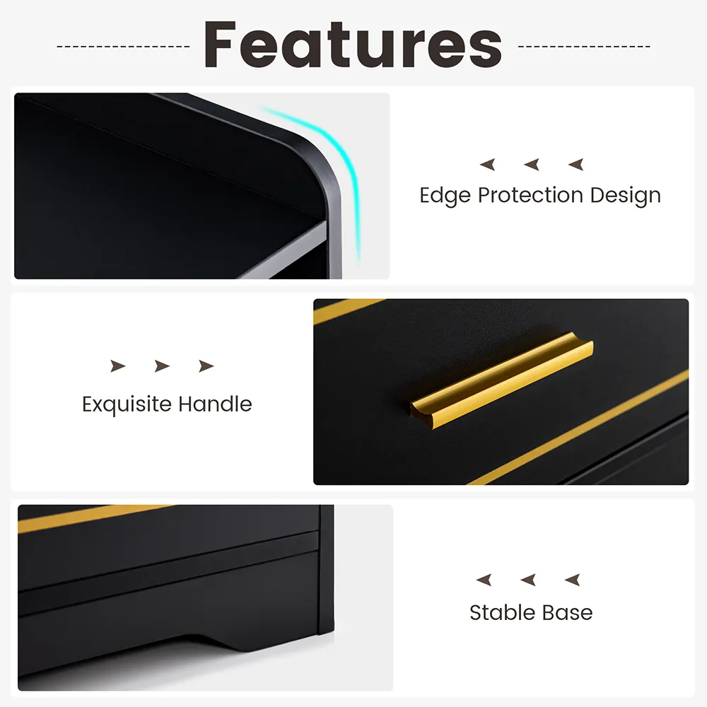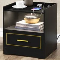 The bedside table features a water-resistant wooden tabletop with a handy drawer and open shelf for versatile storage. Its robust metal frame supports up to 45kg capacity, while adjustable feet ensure stability on any surface. The industrial design combines functionality with storage space, and the smooth surface maintains easily for long-lasting use.