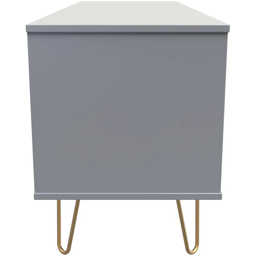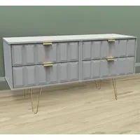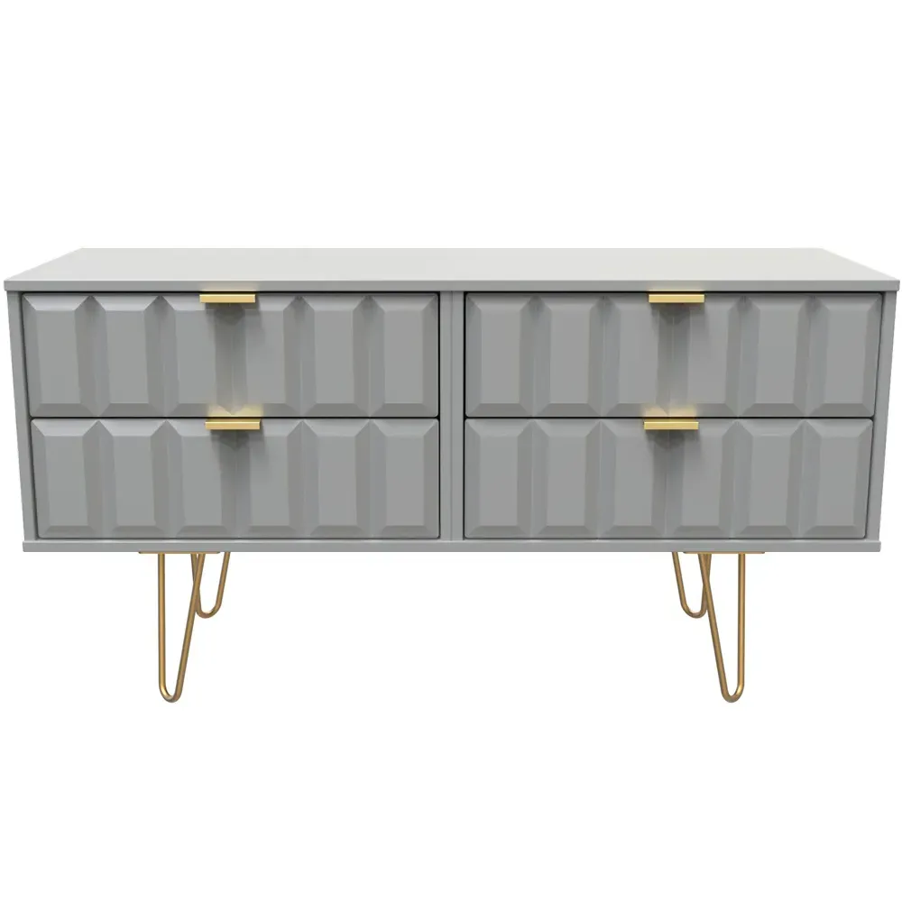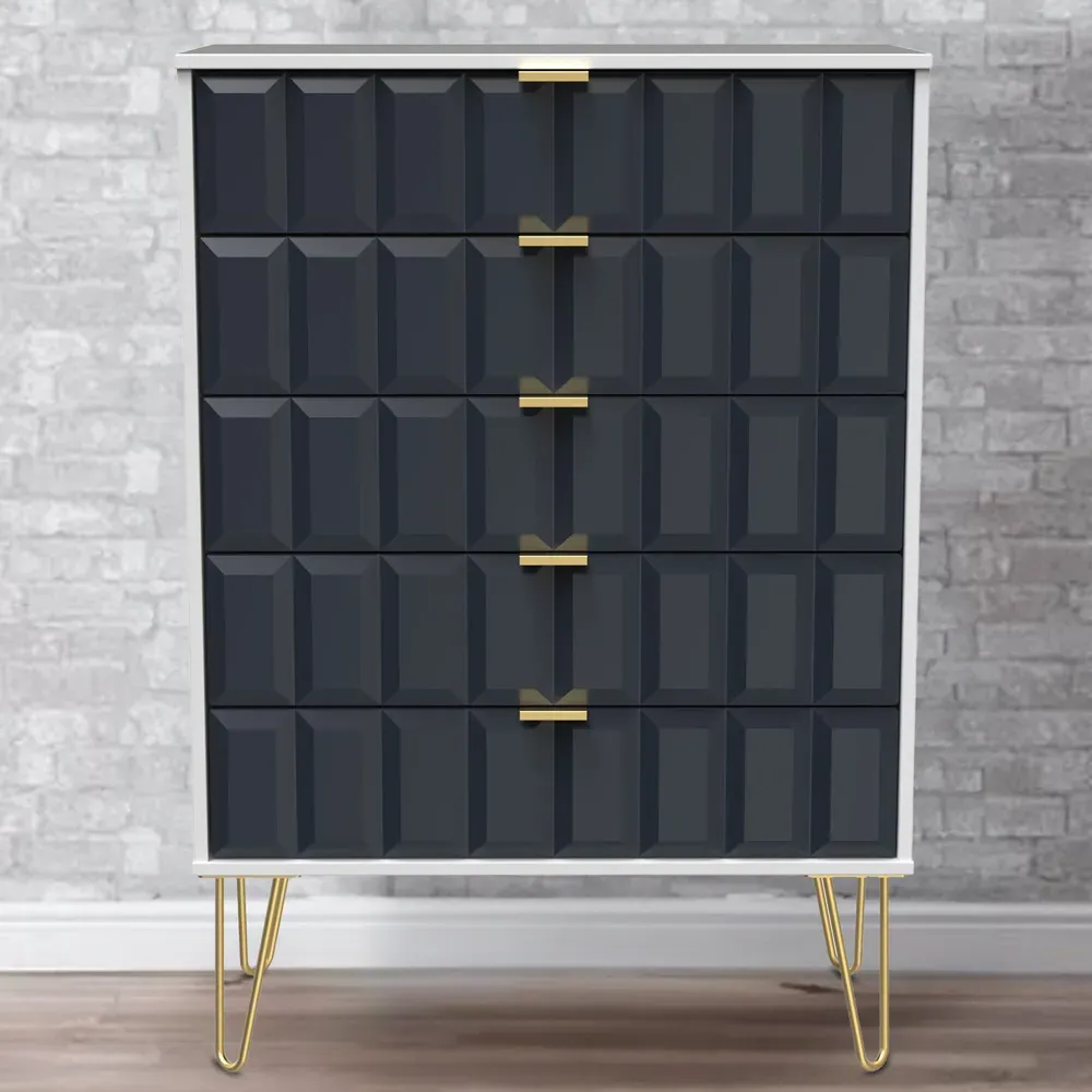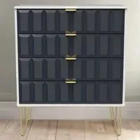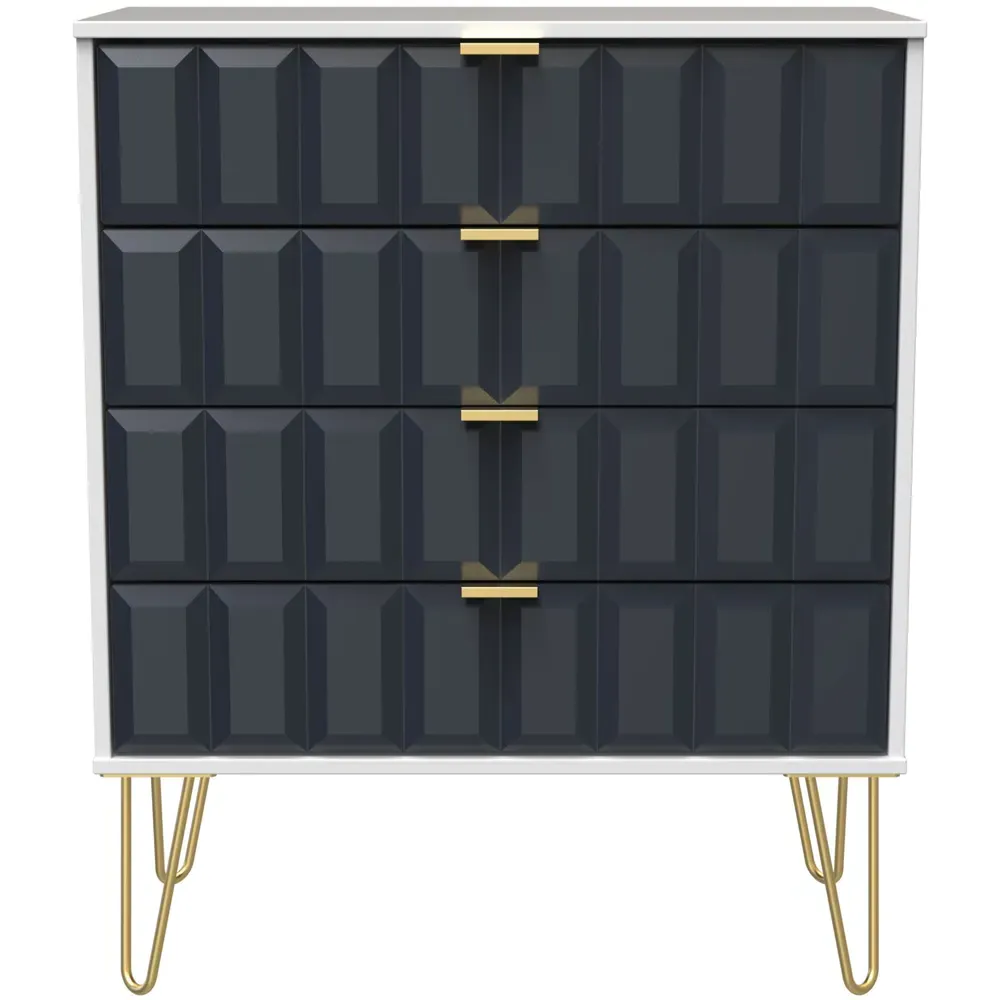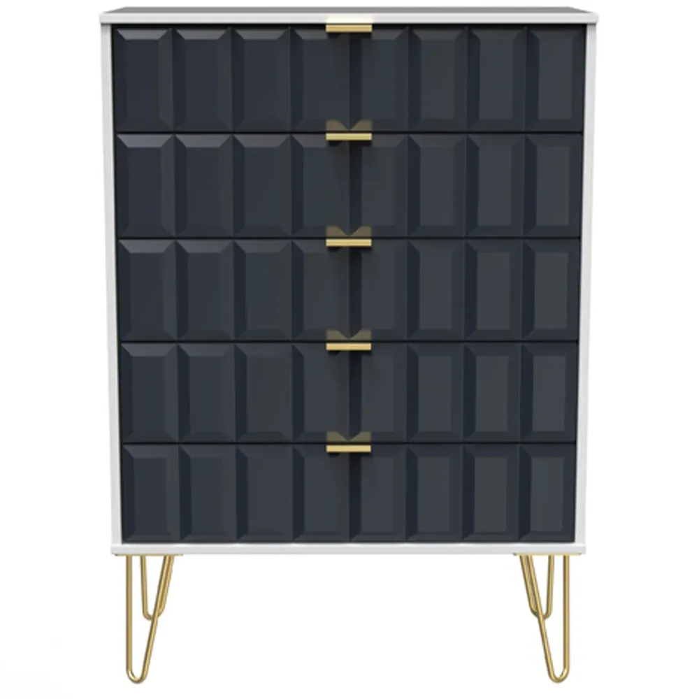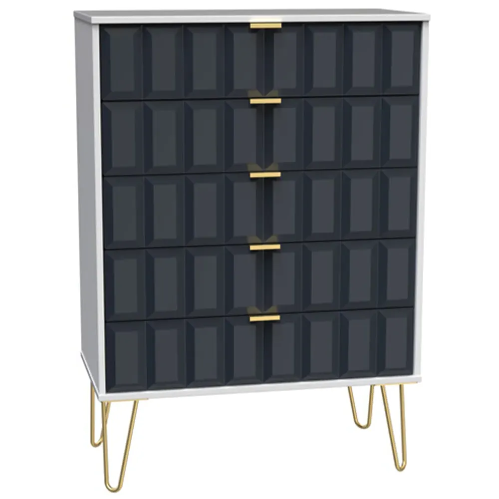 Spruce up your decor and add a blend of practicality and style to your bedroom with this Crowndale Cube 3 Drawer Matt Kashmir Chest of Drawers Ready Assembled. With a beautiful matt Kashmir hue, this bedside table features a striking cube design. Its gold metal pull handle and gold hairpin legs compliment the table's colour and give a charming modern look. The three drawers have smooth metal runners along with linen-effect linings and offer a handy storage solution so can enjoy both functionality and style.