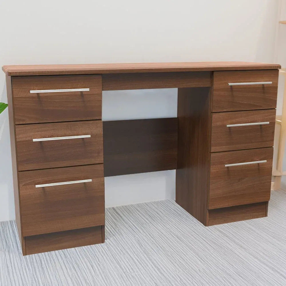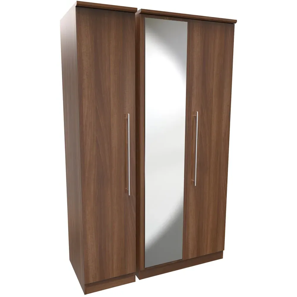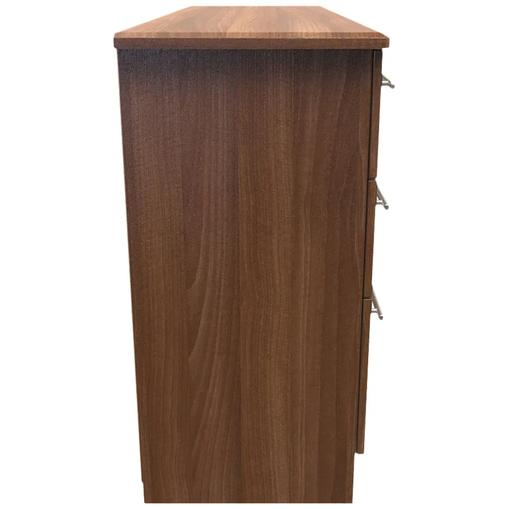 The Sherwood bedside cabinet combines practicality with its three spacious drawers, crafted in rich noche walnut finish. Each drawer features long-lasting metal runners and linen effect interior, while the compact design provides convenient bedside storage. The UK-made construction ensures quality and durability for years of reliable use.