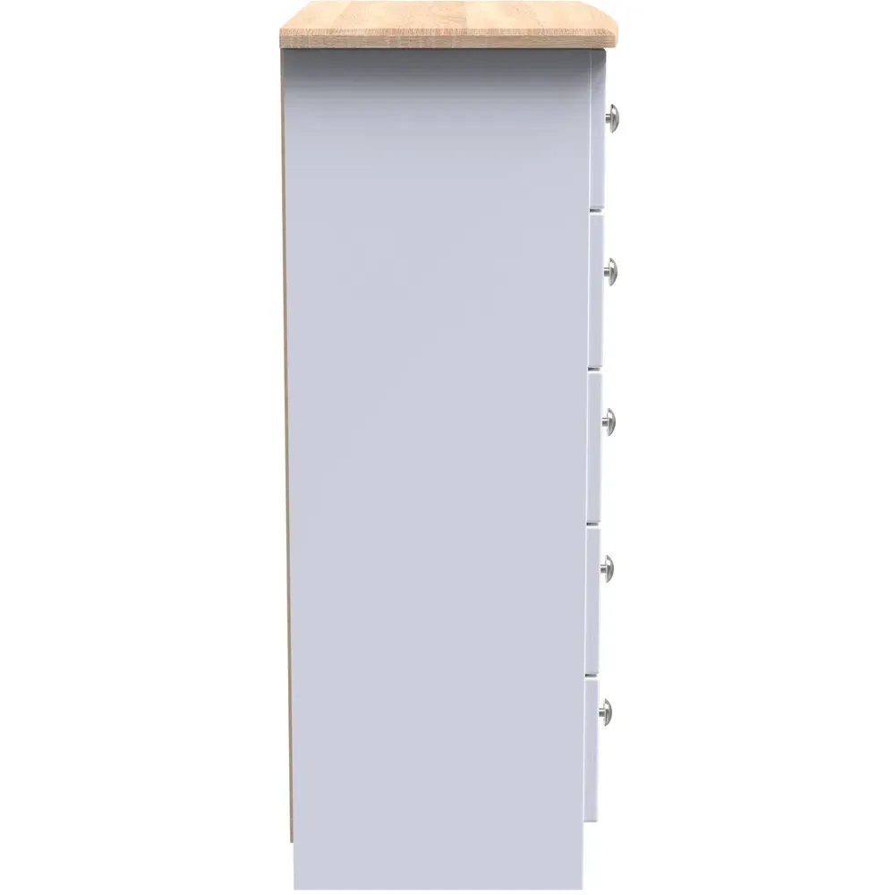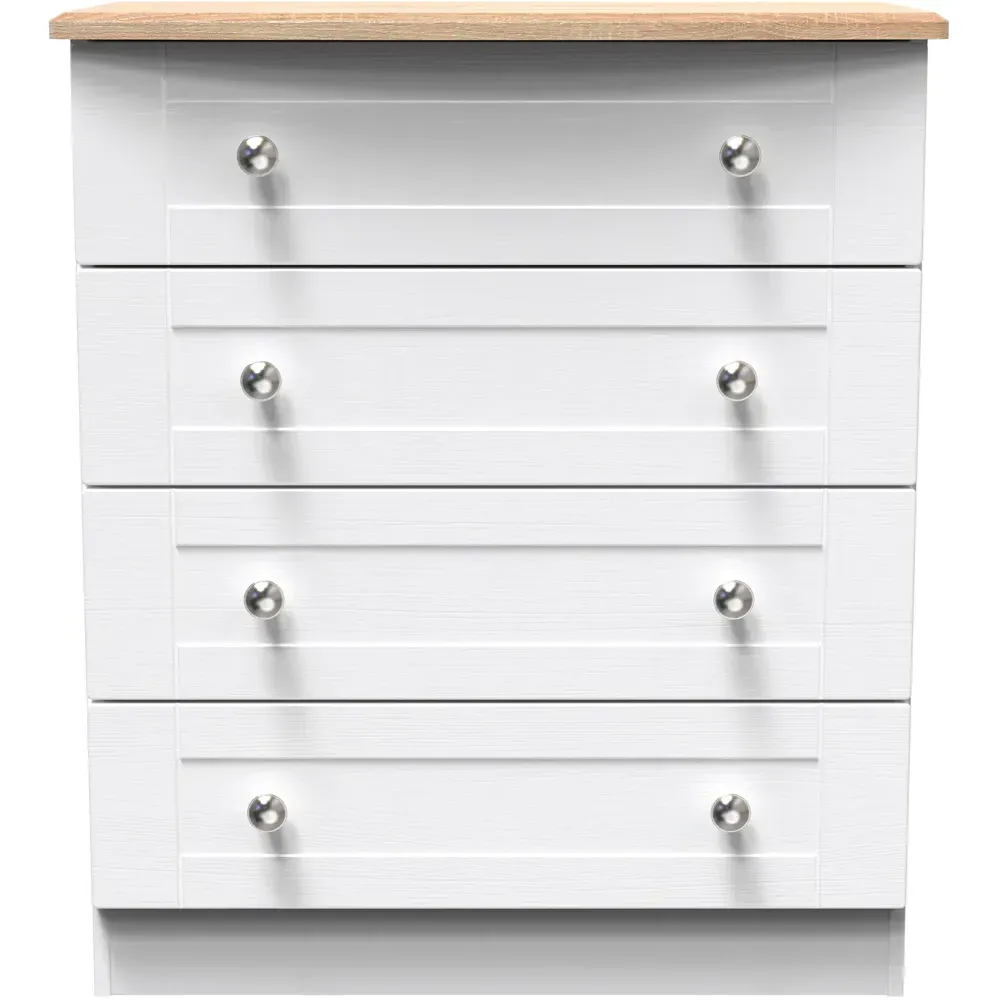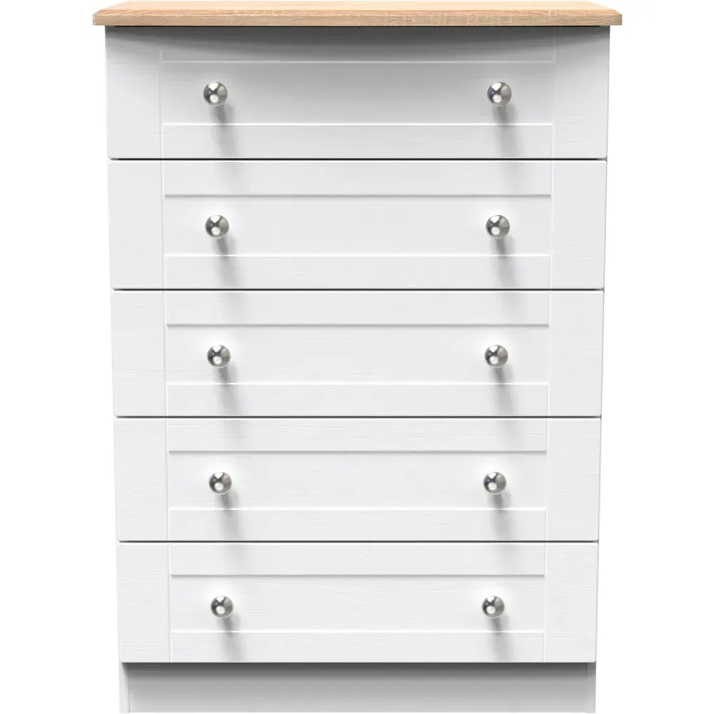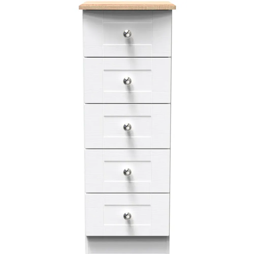 Add a touch of elegance to your space with the Crowndale Sussex 2-Drawer White Ash and Bardolino Oak Bedside Table. With a wood grain effect, panelled design, recessed fronts, contrasting wood top and chrome handles, this unit is practical and stylish in nature. Made in the United Kingdom with the highest quality material, the unit features a traditional design with block panel fronts and polished metal handles. Finished with smooth metal drawer runners and linen-effect drawer lining, the unit has a scratch-resistant surface. It is delivered directly to your location of choice by a two-man delivery team and comes fully assembled. Please note that any handles or legs may be removed during transit to avoid the risk of damage.