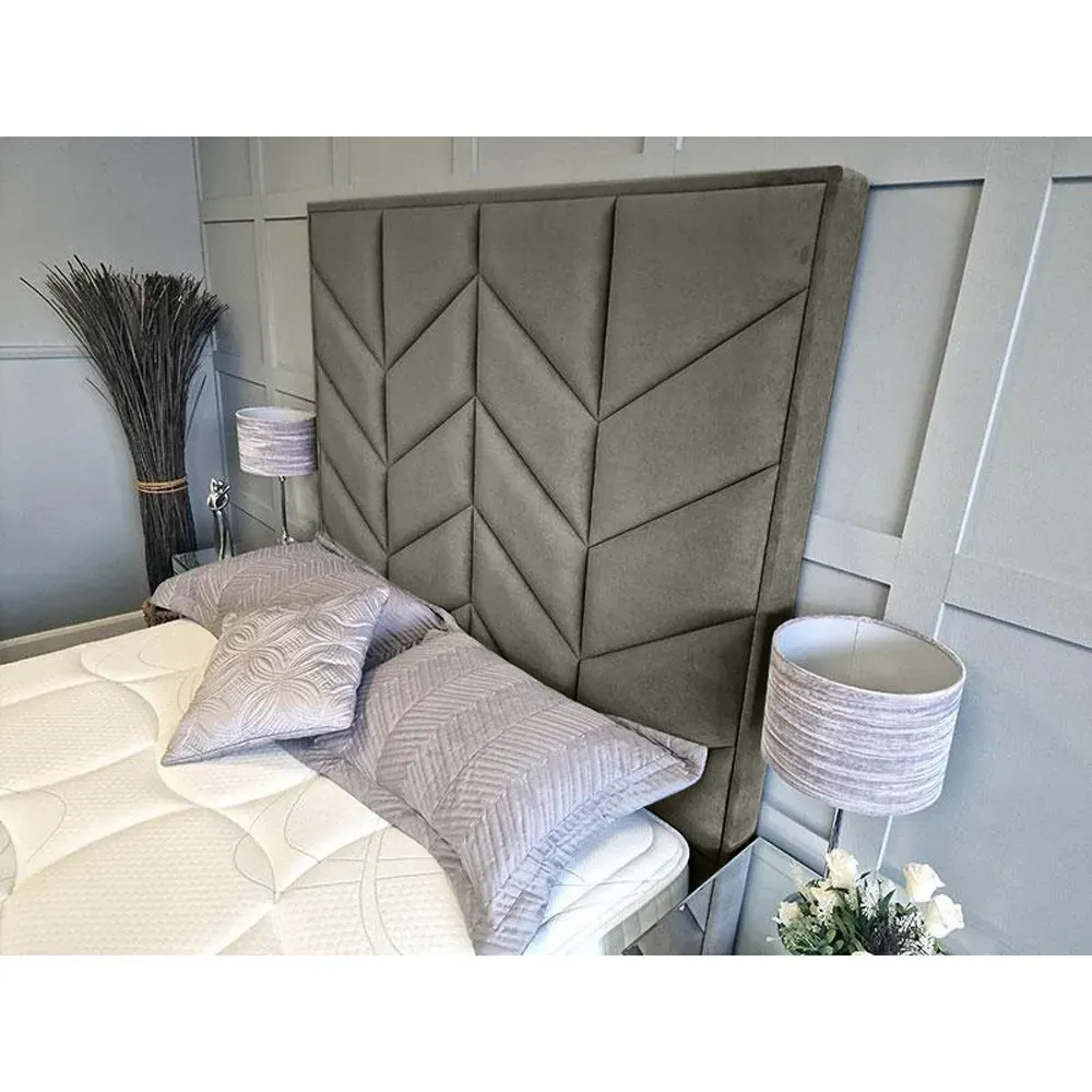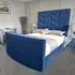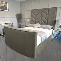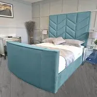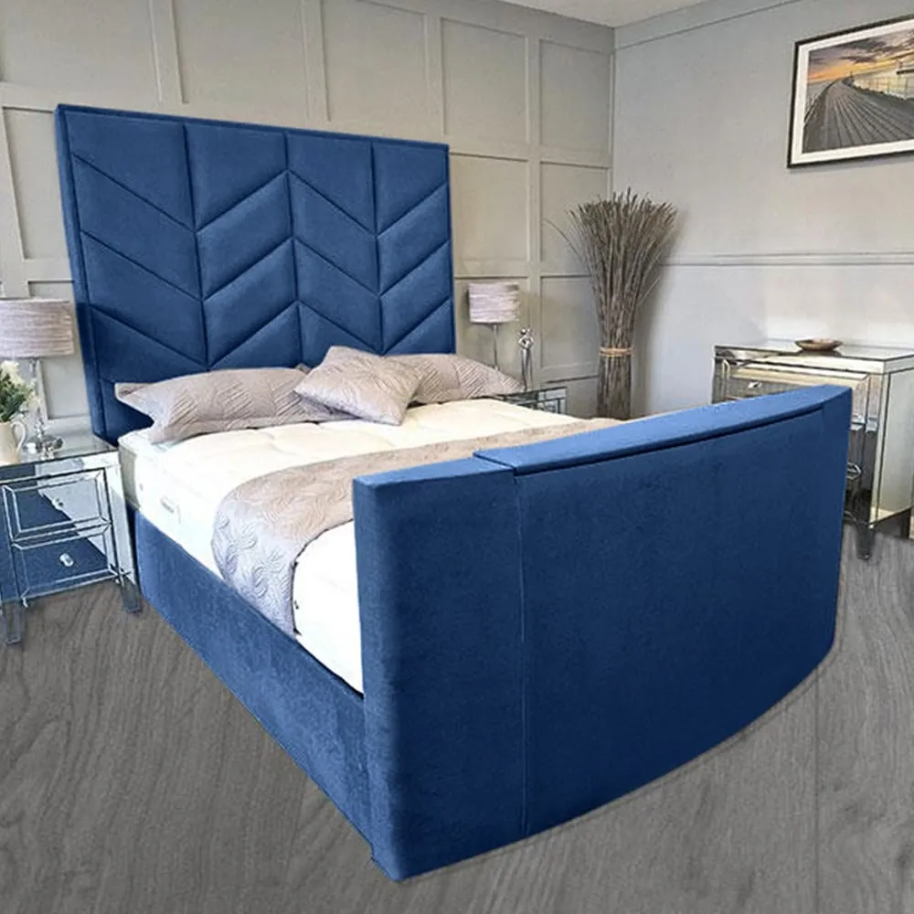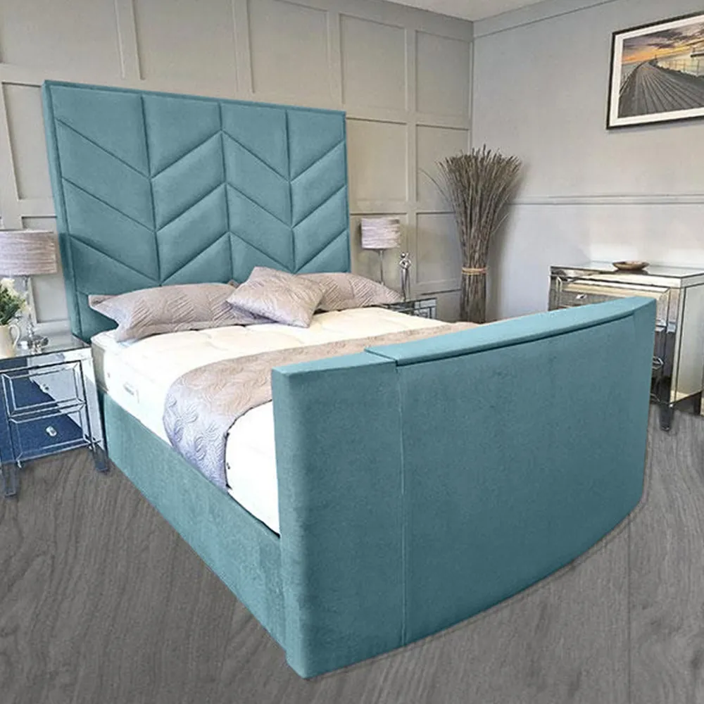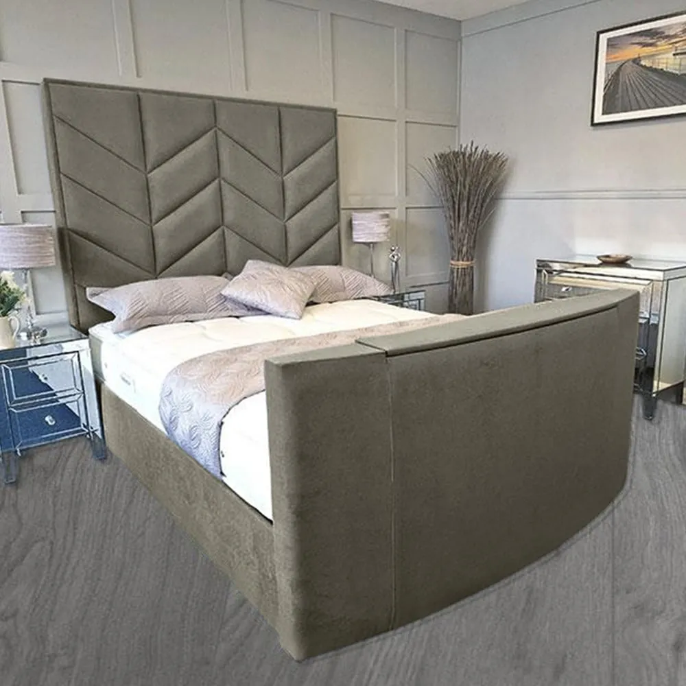 The Alino TV Bed Frame combines entertainment functionality with plush velvet upholstery, crafted in the UK for quality construction. Its built-in remote control system accommodates screens from 40" to 75", while the VESA 600x400 mounting compatibility ensures versatile TV installation. The velvet fabric provides comfort for relaxation, and the sturdy frame construction supports both mattress and integrated television components.
