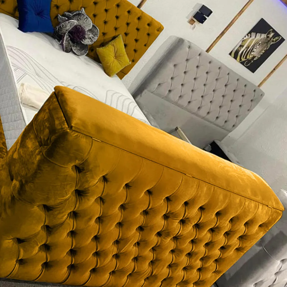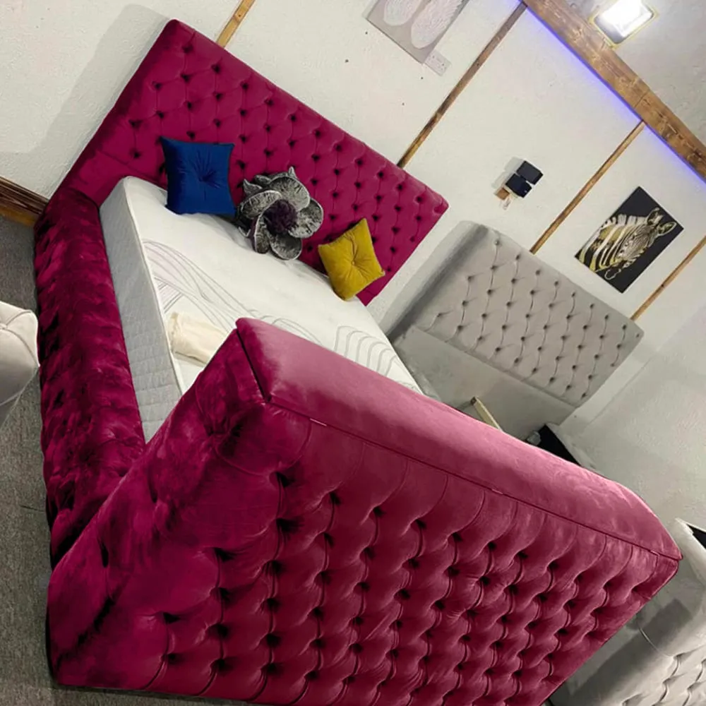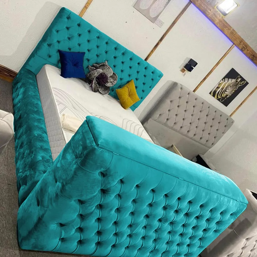 The Arli TV Bed Frame combines luxury with smart functionality, featuring plush velvet upholstery and matching fabric button detailing. Its built-in remote control system supports screens from 40" to 75", while the VESA 600x400 compatibility ensures seamless integration with most modern TVs. The velvet construction adds comfort and durability, and the British craftsmanship provides reliable quality for years of use.