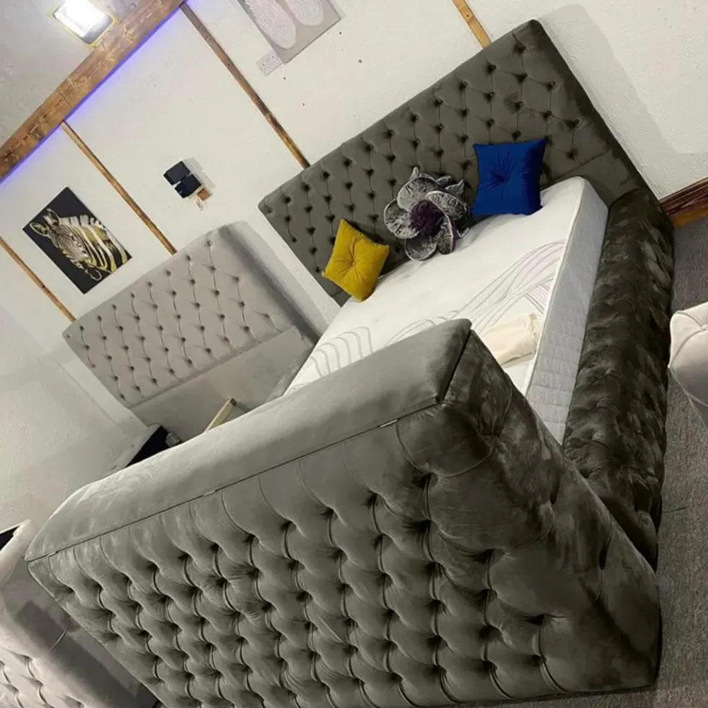 Introducing the Arli Plush Velvet TV Bed Frame-a testament to British craftsmanship and luxury living. Immerse yourself in the opulence of plush velvet and revel in the refined elegance of matching fabric buttons adorning this exquisite piece, meticulously crafted in the UK. Experience the perfect blend of form and function with the built-in remote, seamlessly elevating your TV-watching routine. Designed to accommodate modern technology, the Arli Plush Velvet TV Bed Frame effortlessly supports screens ranging from 40" to 75". Worried about compatibility? Rest easy, as long as your TV features VESA 600?-400 or fewer mounting holes; this bed frame is the epitome of a harmonious union between style and innovation. Redefine your bedroom aesthetic with Arli-where sophistication meets smart design.