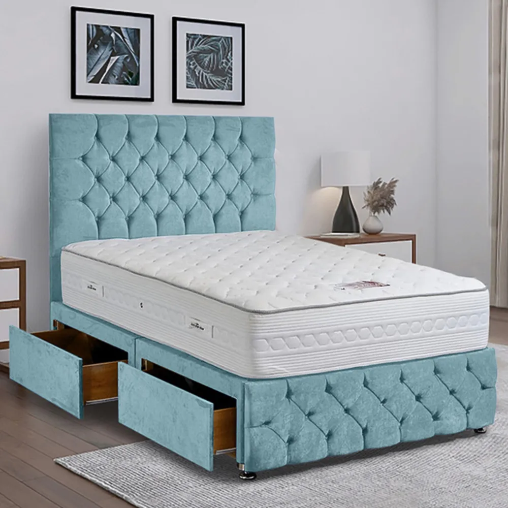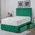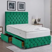 The Comfyzone Divan Bed offers comfort with its 54-inch Chesterfield-style headboard, adorned with fabric buttons and upholstered in plush velvet. Its handcrafted UK construction provides durability, while the button-tufted design adds texture and visual appeal. The divan base ensures stable support, and the velvet upholstery creates a luxurious feel that enhances any space.
