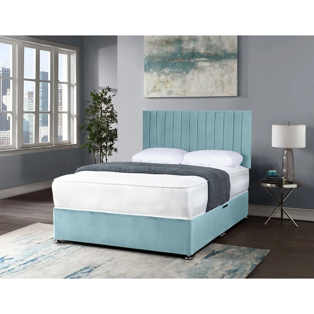 The Naptime Divan Bed offers comfort with its plush velvet upholstery and lined headboard design. The 54-inch headboard provides support while adding visual appeal, and the handcrafted UK construction ensures durability. Its single size suits compact spaces, while the divan base delivers reliable support for restful sleep.