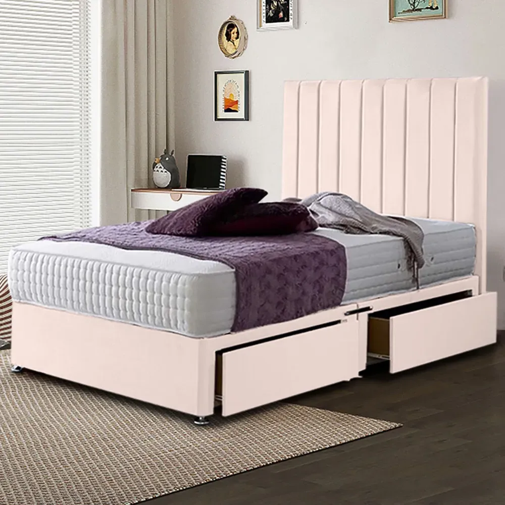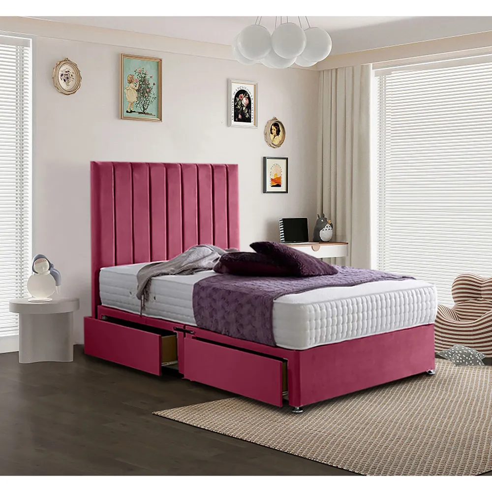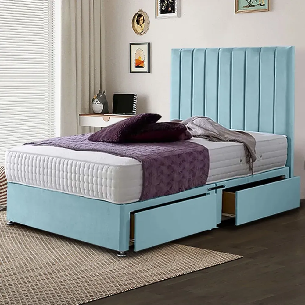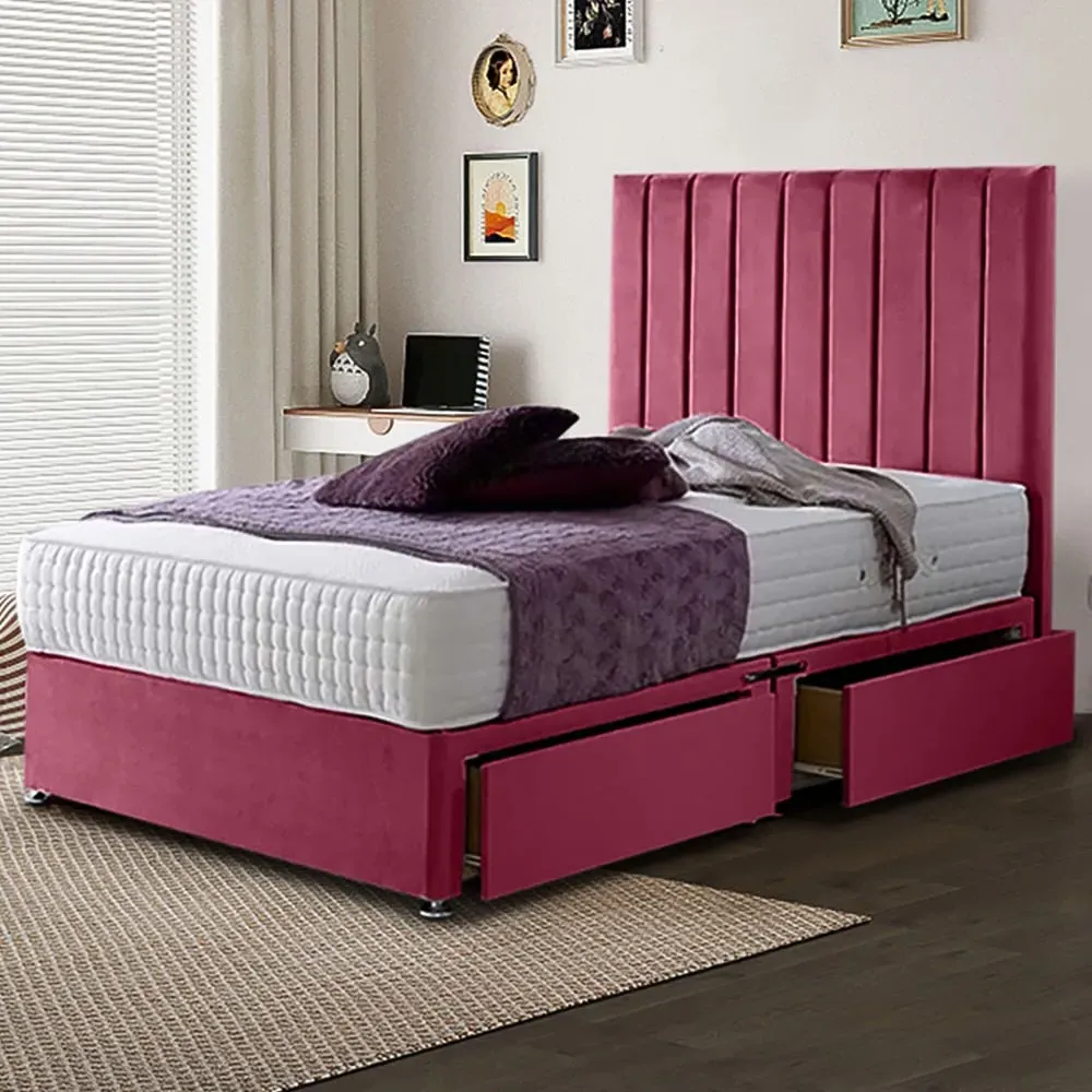 The Sleepytime Divan Bed combines comfort with practical storage, featuring two spacious drawers and a lined headboard design. Its plush velvet upholstery adds rich texture, while the built-in drawers provide convenient organization for essentials. The 54-inch headboard offers support and visual appeal, and the UK-crafted construction ensures lasting durability.