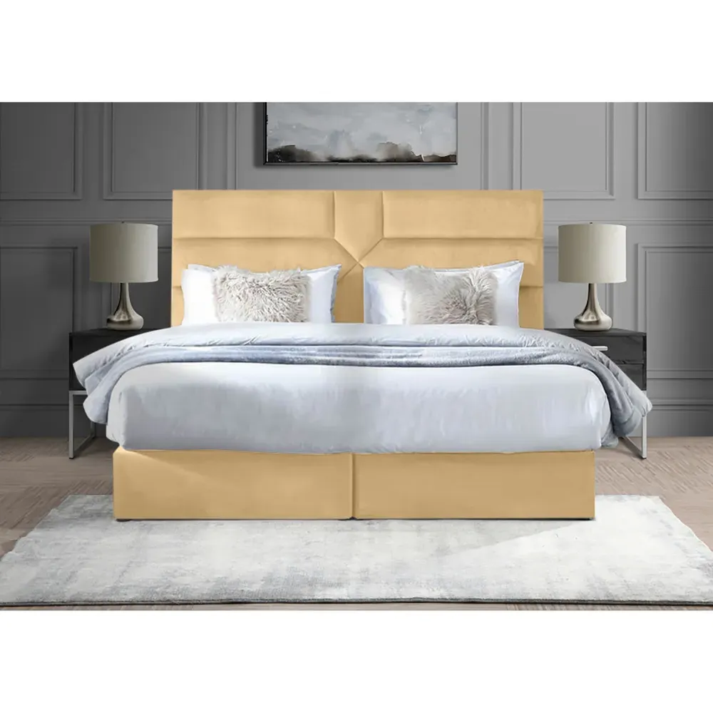Indulge in the epitome of sophistication with the Tranquilite Divan Bed, a masterpiece that blends the timeless allure of Art Deco with unparalleled comfort. Handcrafted in the UK, this bed features a striking 54-inch headboard, meticulously designed with fan-like motifs that capture the essence of the Art Deco era. The plush velvet upholstery adds a layer of opulence to your bedroom decor, making it an ideal choice for those who appreciate both style and comfort in their sanctuary.