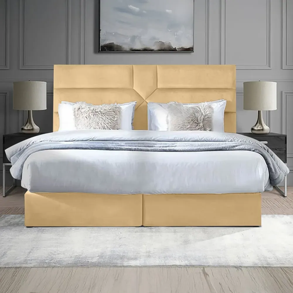 The Tranquilite Divan Bed offers Art Deco-inspired design with its striking 54-inch headboard featuring fan-like motifs. The plush velvet upholstery provides luxurious comfort, while the handcrafted UK construction ensures lasting quality. Its divan base delivers excellent support, and the decorative headboard adds sophisticated style to any bedroom.