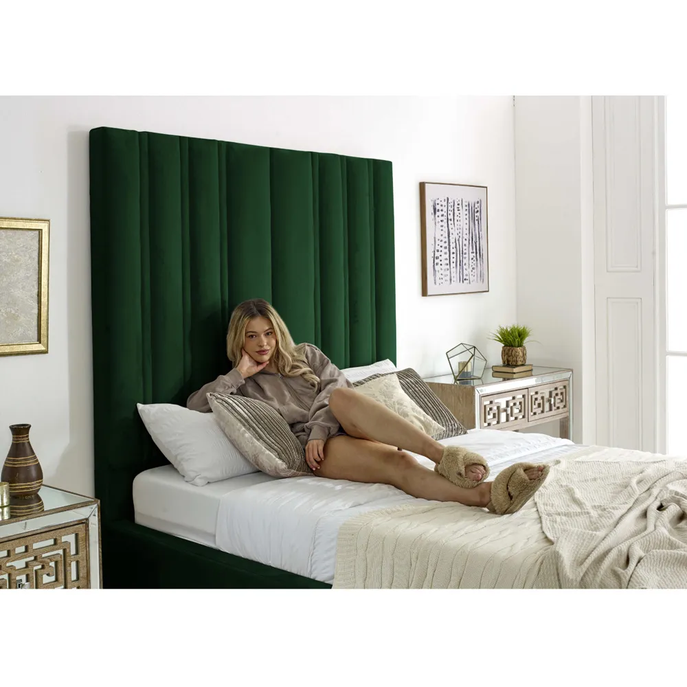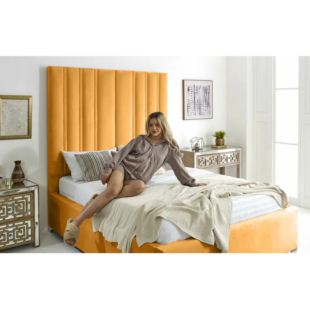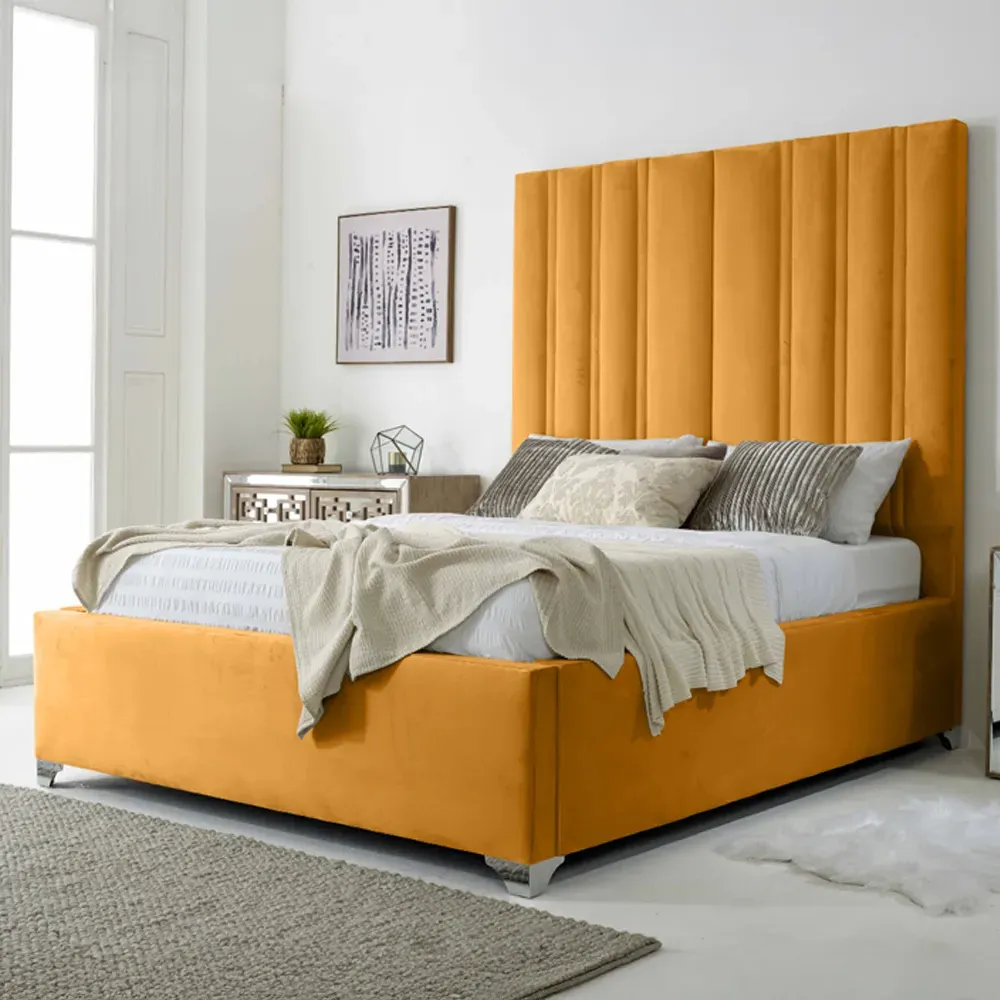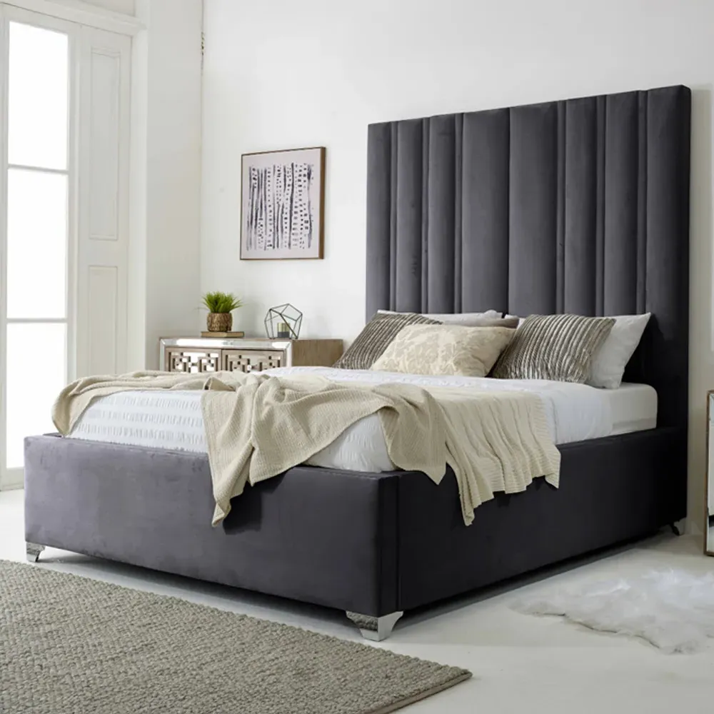 Introducing the Wilburn Plush Velvet Fabric Bed Frame, a showcase of British craftsmanship and modern elegance. Made from plush velvet fabric, this bed frame infuses your bedroom with luxurious comfort and style. The lined headboard design adds a touch of contemporary sophistication, making it a standout feature in any room. The Wilburn Bed Frame offers a perfect fit for any space. Elevate your bedroom with the Wilburn Plush Velvet Fabric Bed Frame, where superior quality meets timeless design.