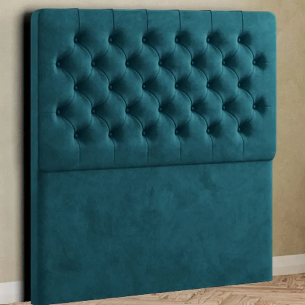 The Winchester Floor Standing Headboard offers sophisticated comfort with its plush upholstery and matching button detailing. Its 54-inch width provides ample coverage for small double beds, while the floor-standing design ensures stable support without wall mounting. The button-tufted surface adds textural interest and maintains the headboard's shape over time. The durable construction combines quality materials with refined craftsmanship for long-lasting use.