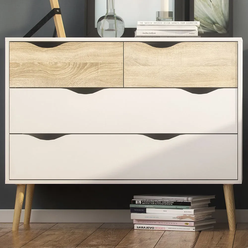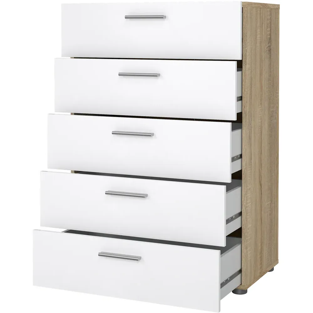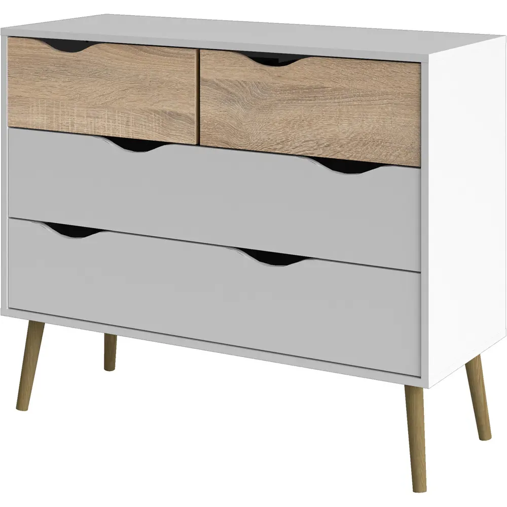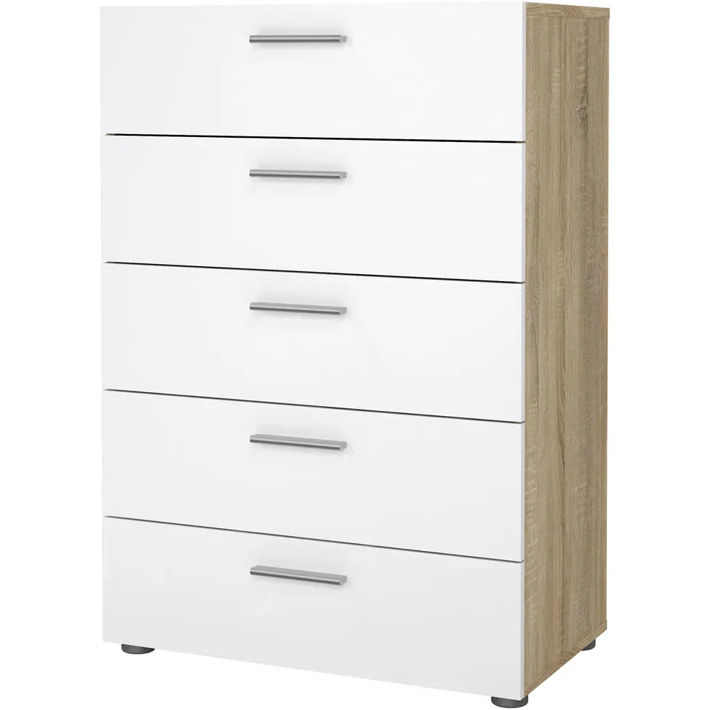 The Florence Jackson chest combines hickory oak laminated board construction with easy gliding drawer runners for smooth operation. Its three spacious drawers provide versatile storage options, while the premium laminated board resists damage, scratches, and moisture. The durable construction withstands high temperatures and ensures long-lasting performance for everyday use.