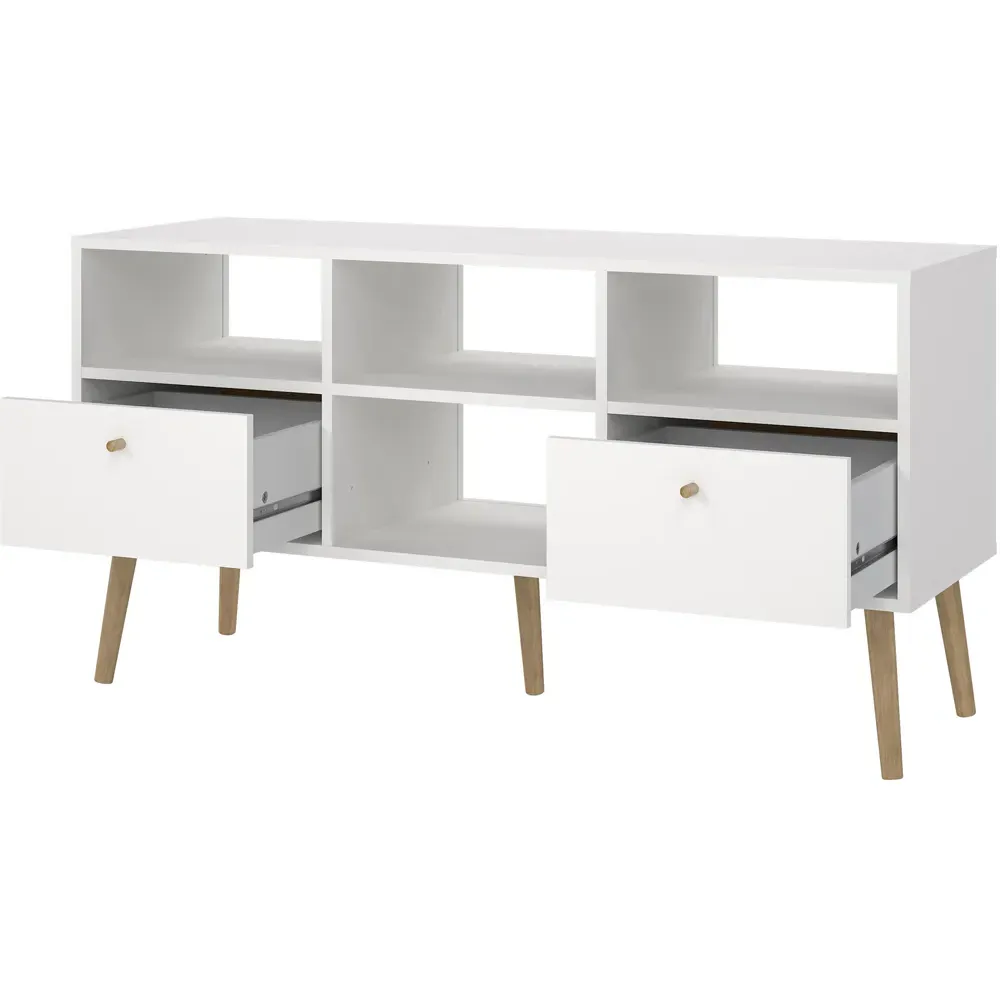 Make a stylish addition to your home decor with this Cumbria Nightstand by Furniture To Go. This Cumbria nightstand perfectly matches any contemporary and minimalist bedroom decor. Its versatile and timeless design can add a touch of sophistication to any bedroom. Its white finish adds depth to your interior. The nightstand has one door and one drawer complemented by simple round handles and sleek wooden legs. The drawers have easy gliding runners for smooth accessibility and sufficient storage space for your daily essentials.