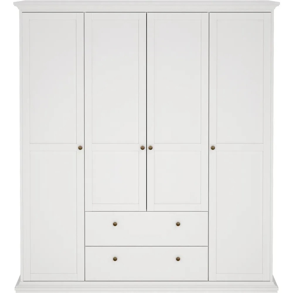 The Florence Paris Bedside Table features two drawers with easy gliding runners for smooth operation and convenient bedside storage. Its high-quality laminated board construction ensures durability, while the white finish adds a timeless appeal to your space. The compact design provides sufficient storage for your essentials without overwhelming the room.