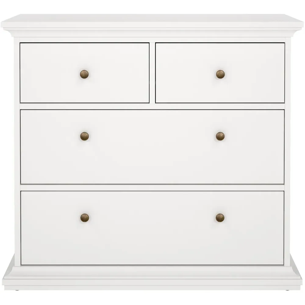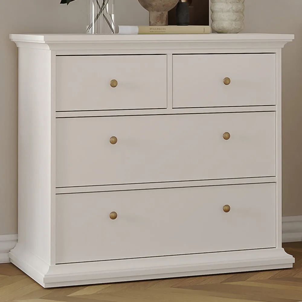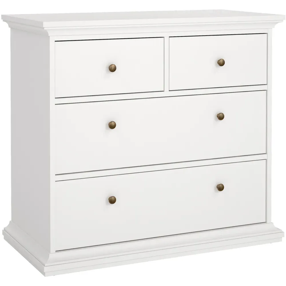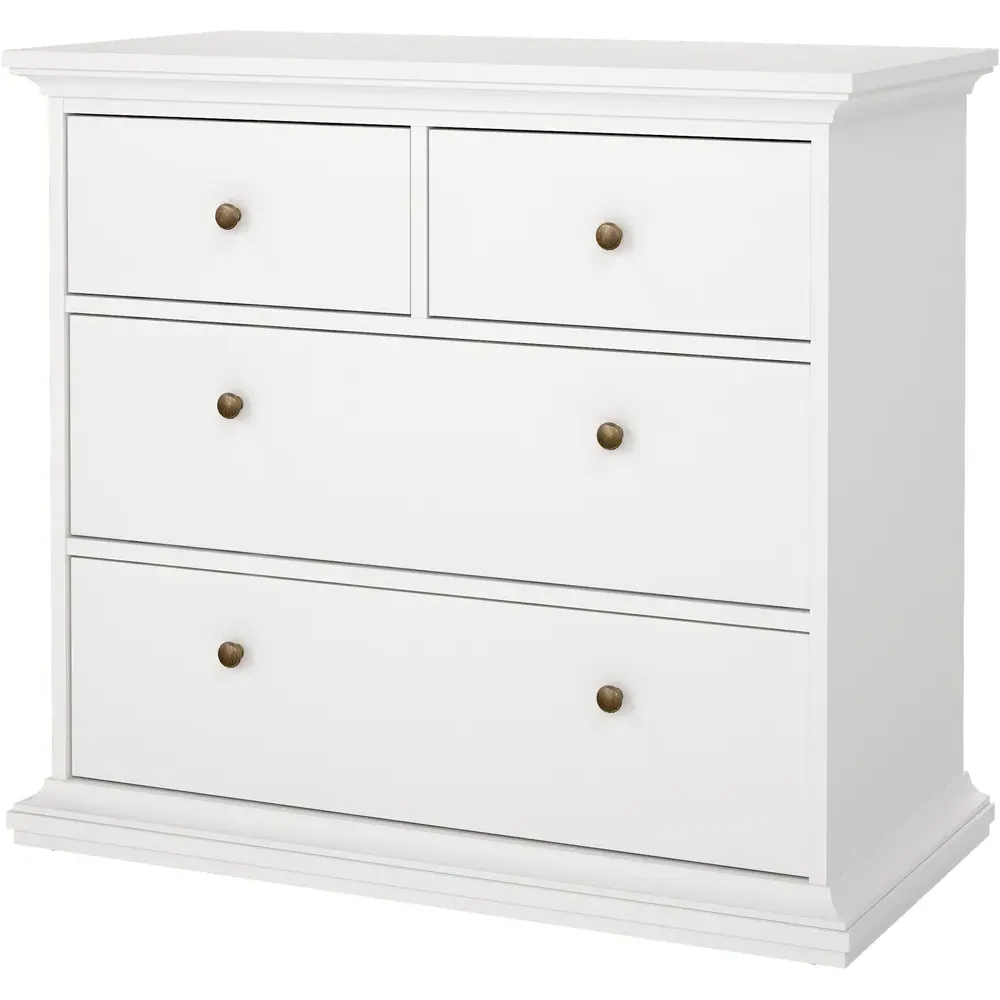 Make a beautiful addition to your home interior with this Paris Bedside Table by Florence. With its romantic style, sophisticated look and beautiful classic feel this bedside table can uplift your bedroom decor. This bedside table features two drawers with easy gliding drawer runners, which are easy to use and offer sufficient storage space to arrange your essentials. Made from high-quality laminated board, this stylish and timeless white-coloured bedside table can enhance your bedroom.