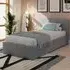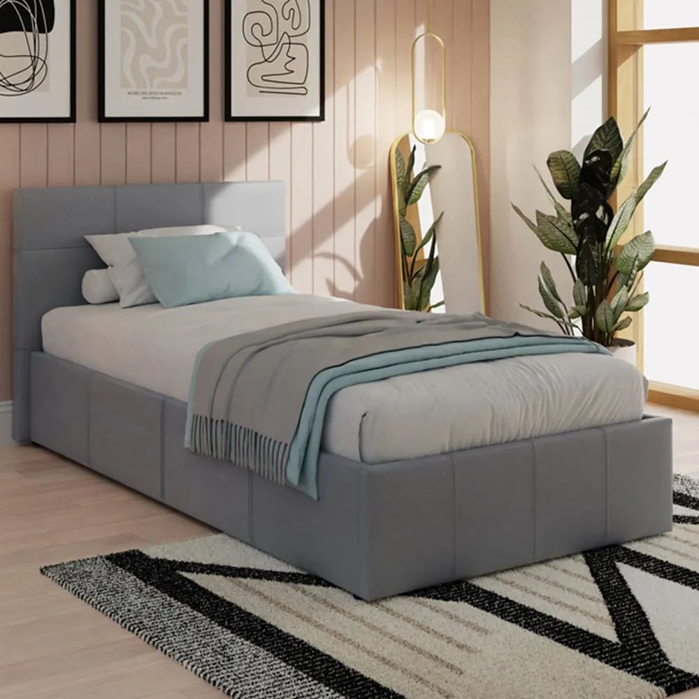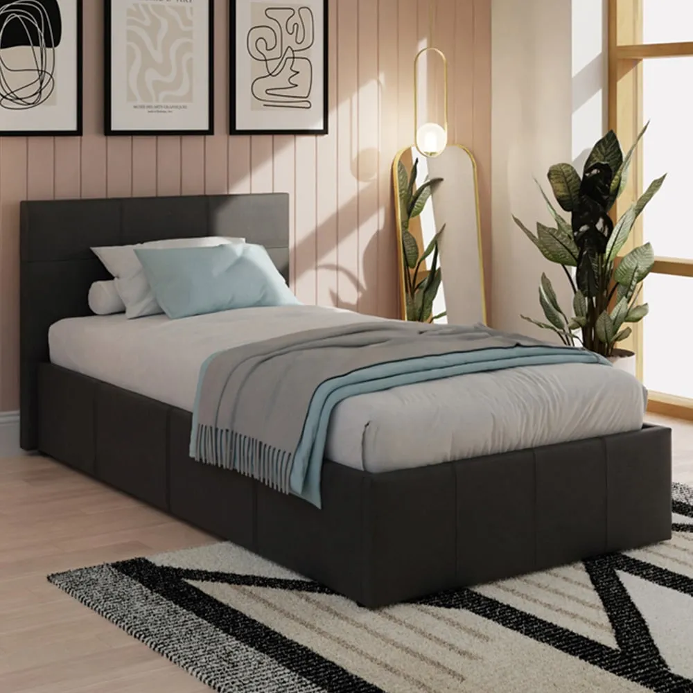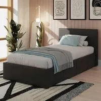 This stunning end-lift ottoman bed offers an attractive combination of contemporary style and ample storage space. This beautifully crafted frame is finished in high-quality faux leather and complemented by a simple yet stylish stitched headboard. This is an ideal solution if space is at a premium in your bedroom, as the ottoman base provides generous storage space for linen, blankets, towels or clothes. The base lifts easily with the help of a gas hydraulic system so you can access the lined storage area underneath the bed.