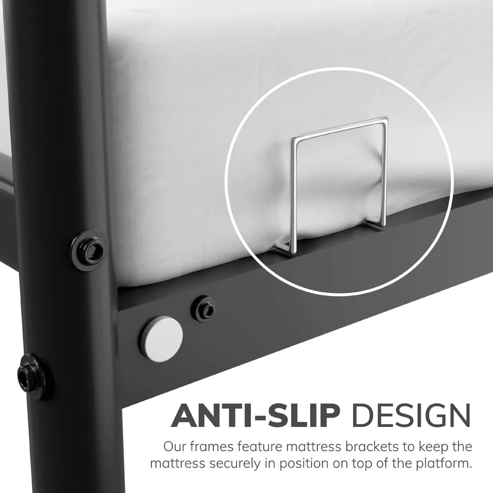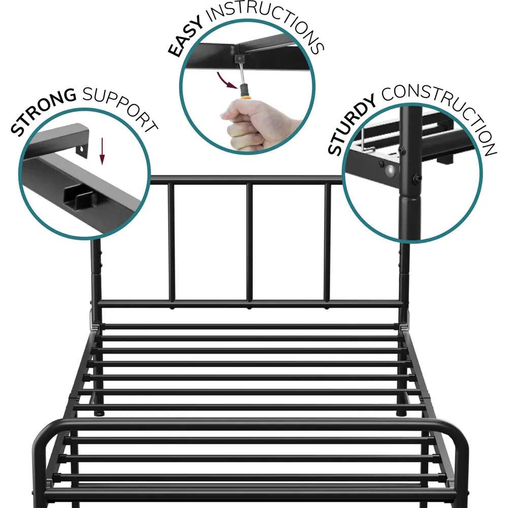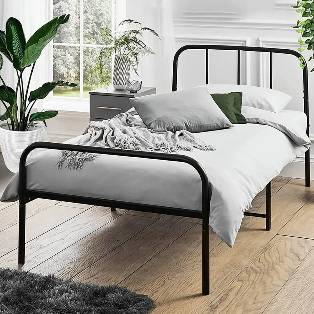 Discover the ultimate sanctuary for rest and rejuvenation with this House Of Home Single Black Extra Strong Metal Bed Frame. Crafted with precision using robust metal tube slats and centre support legs, this bed frame boasts an extra-strong and durable design, ensuring longevity for a reliable sleeping solution. The bed adapts to various tastes and styles, making it a versatile choice for guest rooms, children's rooms, or minimalist bedrooms. Maximise your bedroom's potential with the spacious under-bed storage area, perfect for concealing clutter in storage drawers, baskets, or containers. It comes flat-packed with straightforward instructions, and all necessary components are included in the box, ensuring a quick and simple installation. Measuring 6 x 3ft (198 x 93cm), this versatile bed frame comfortably accommodates a standard single mattress, providing a restful night's sleep. With an enhanced load-bearing capacity of 120kg, rest assured that this bed frame not only offers style but also the strength to support a comfortable and reliable sleep experience.
