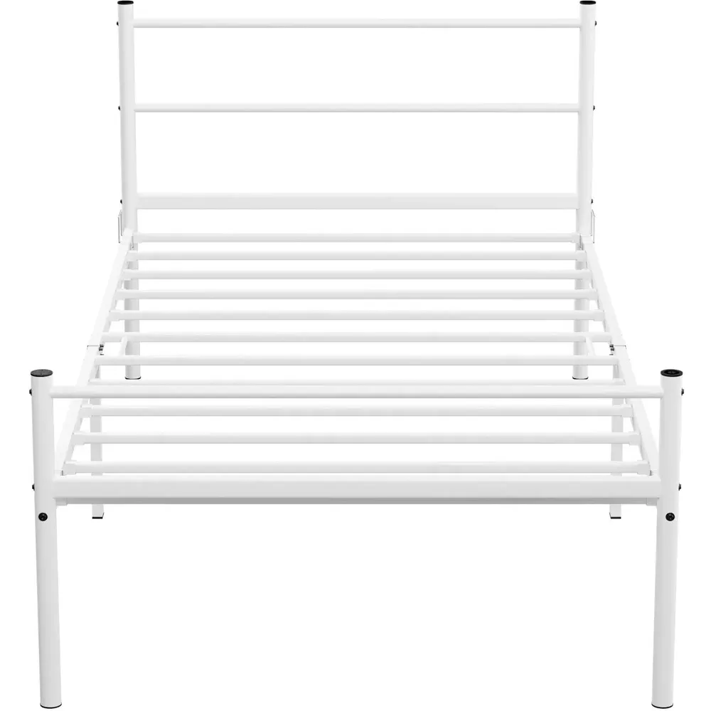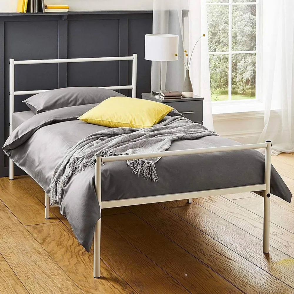 The bed frame combines extra-strong construction with robust metal tube slats and centre support legs, ensuring durability for reliable sleep support. Its metal framework provides stability for daily use, while the spacious under-bed area accommodates storage containers for organisation. The frame comes flat-packed with straightforward assembly instructions and all necessary components included. With a load-bearing capacity of 120kg, this frame delivers both strength and comfortable sleep support. W198 x D93 cm.