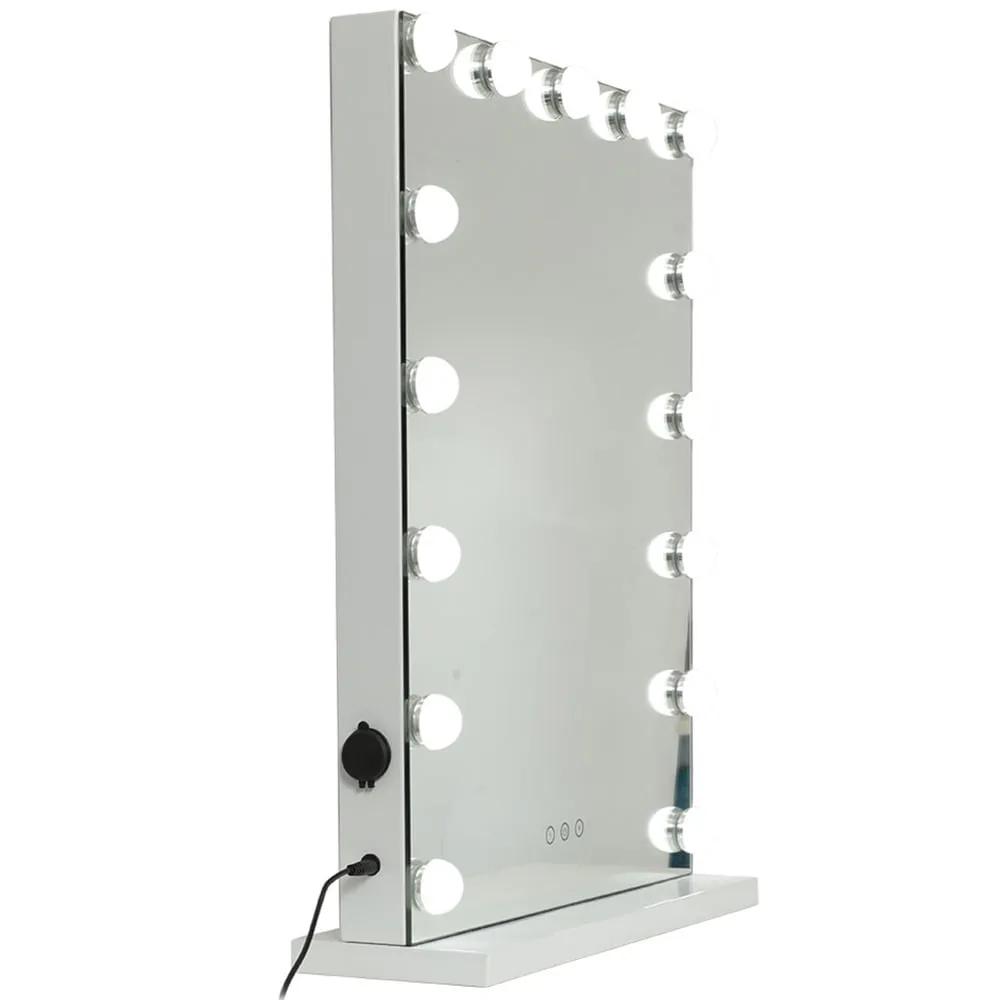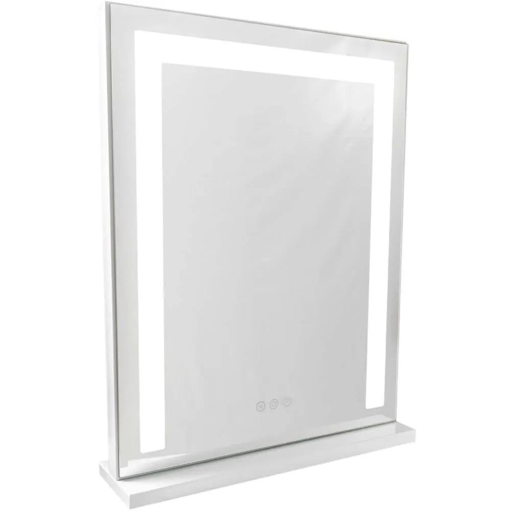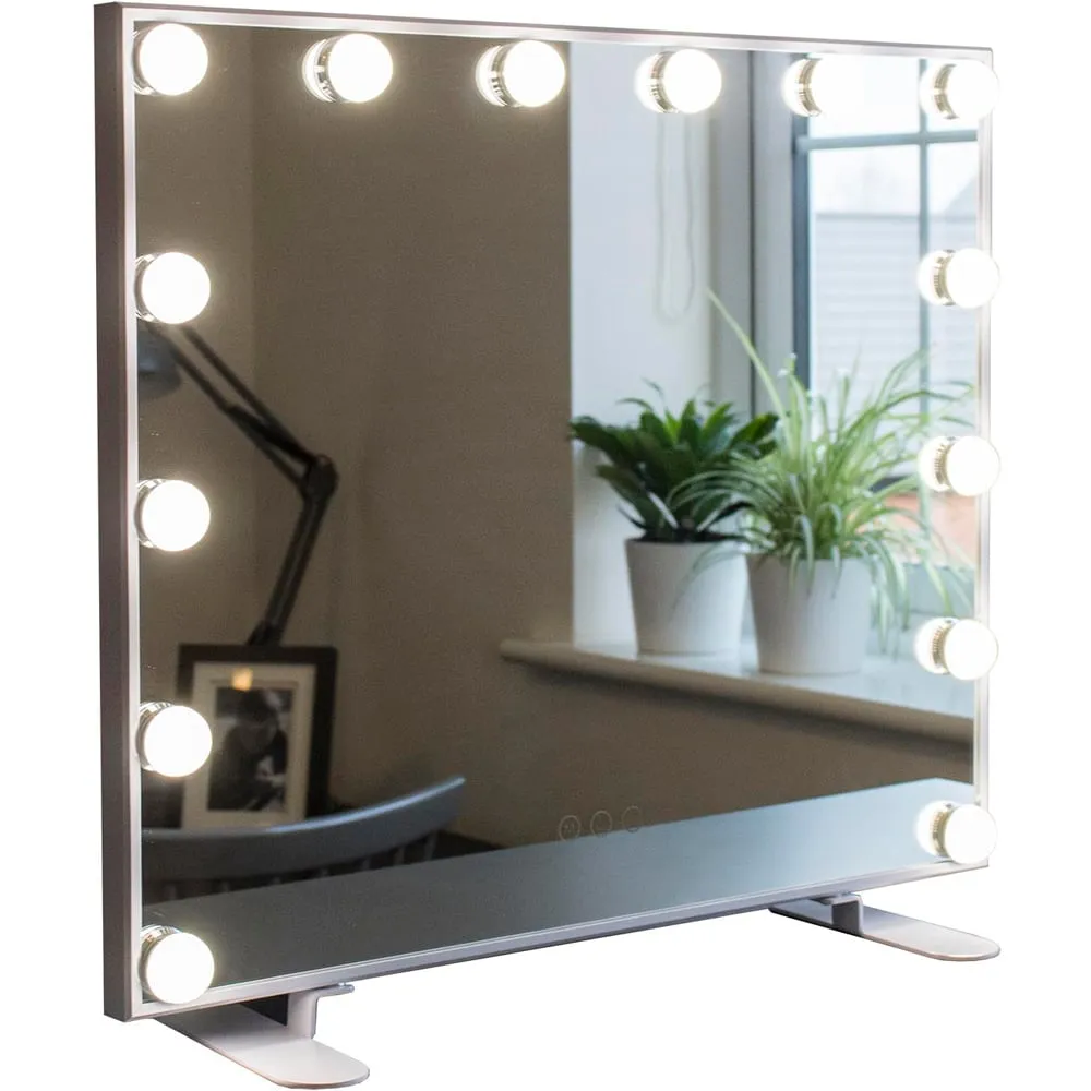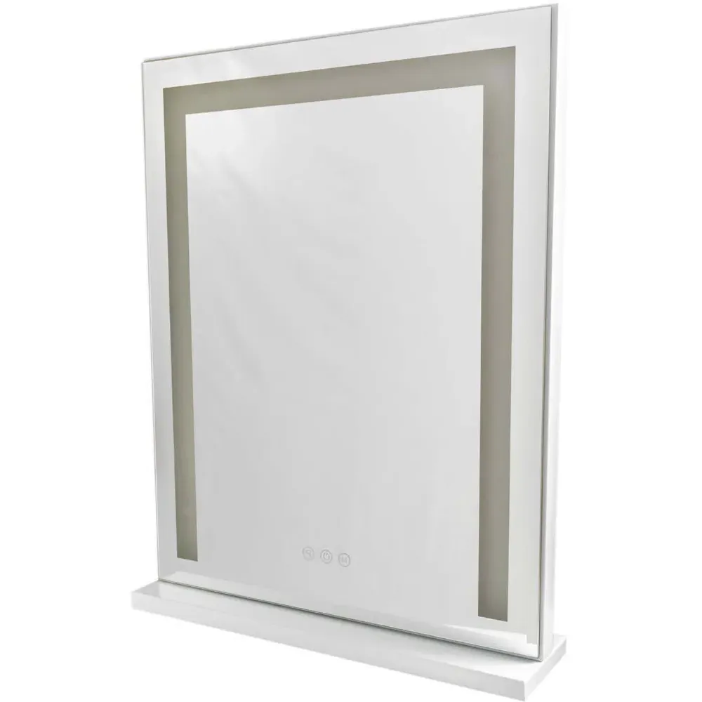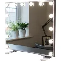 Make a stunning combination of old-school Hollywood glamour and modern technology with Jack Stonehouse Veronica Hollywood Mirror. It features a tabletop design inspired by the iconic mirrors found in Hollywood dressing rooms. Complete with nine long-lasting LED globe bulbs - the mirror radiates brightness and even illumination. With easy-to-use touch buttons, you have total control over the luminosity of the mirror, allowing you to create the perfect lighting for your beauty routine. The mirror also has a smart memory function that remembers your last lighting setting. It also comes with three colour temperature modes (cool, daylight, and warm lighting) and a dimmer button to adjust brightness. Additionally, the mirror tilts up and down, allowing you to set the perfect viewing angle. Made with a lightweight and durable white metal frame and base, the Veronica mirror is a glamorous addition to any dressing table, vanity top, or makeup station. It plugs into a socket via a 2m cable, eliminating the need for mains wiring. The mirror also features a portrait design with the plug located at the rear of the mirror panel. And for peace of mind, it comes with a 12-month manufacturer's warranty. Experience the beauty and functionality of the Veronica Hollywood mirror and elevate your beauty routine to the next level.