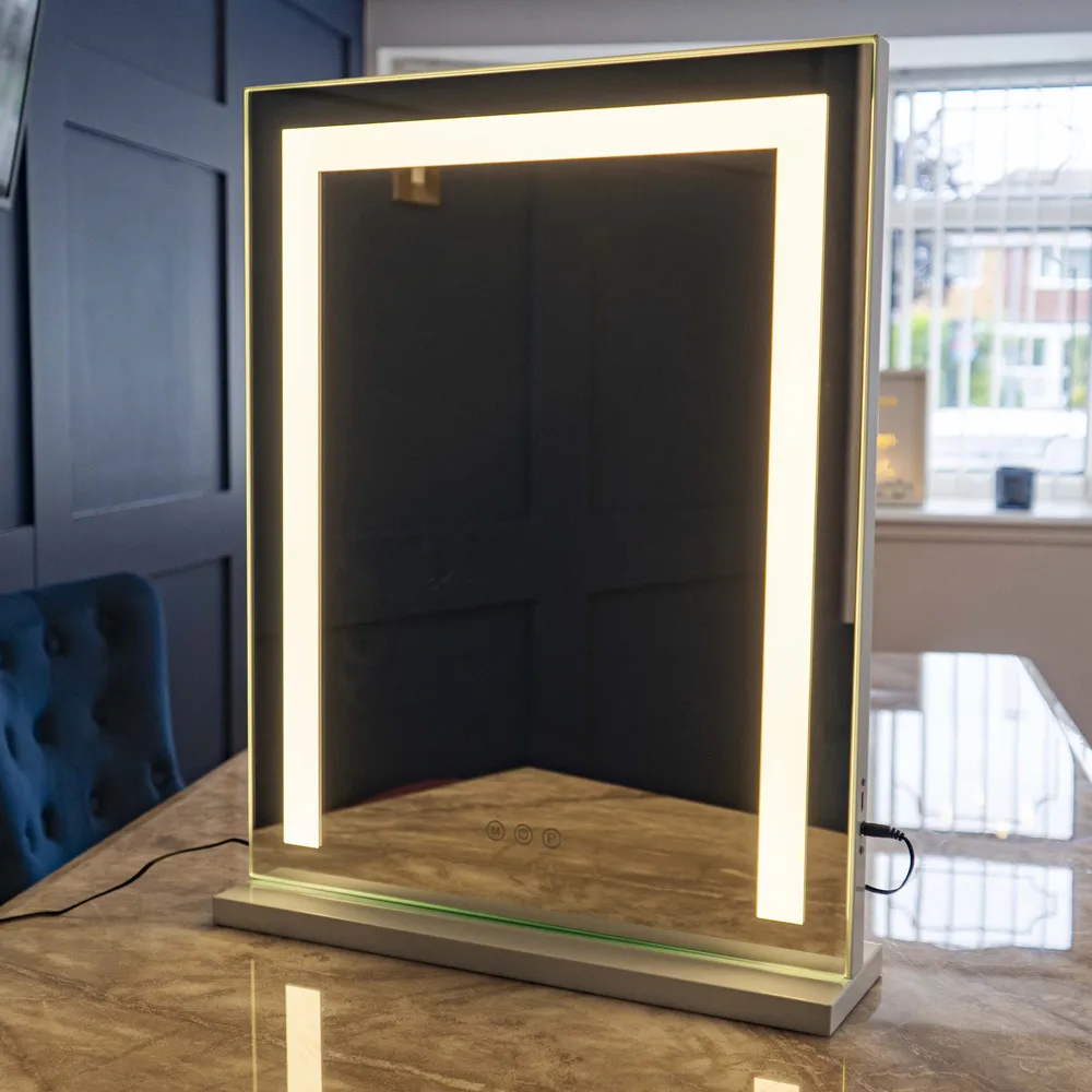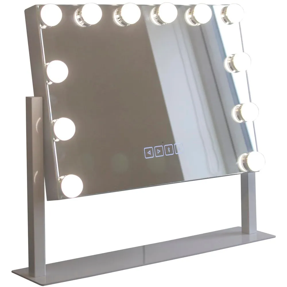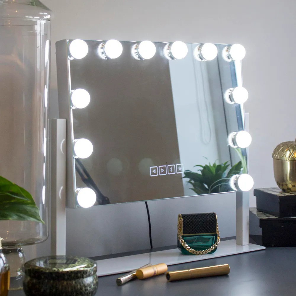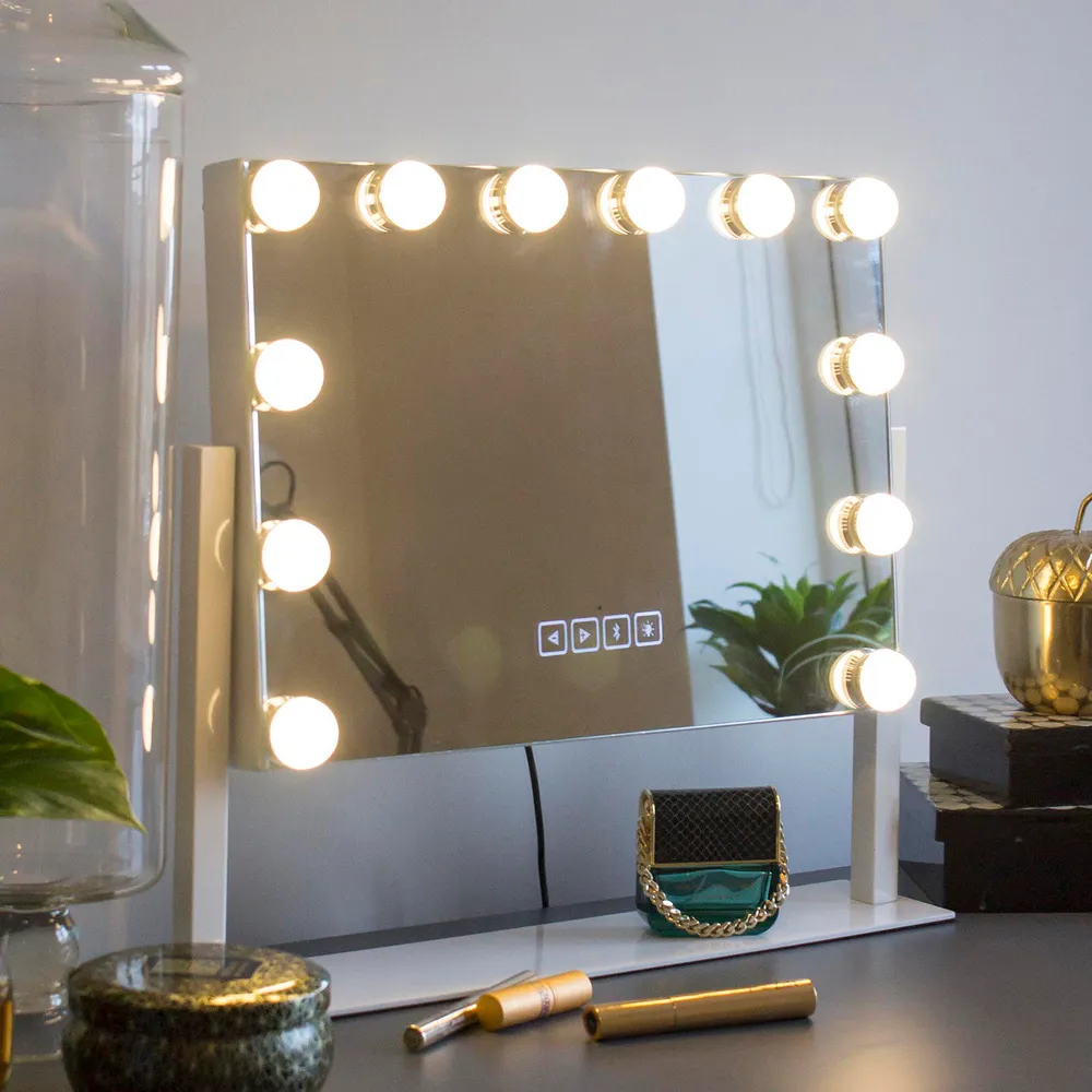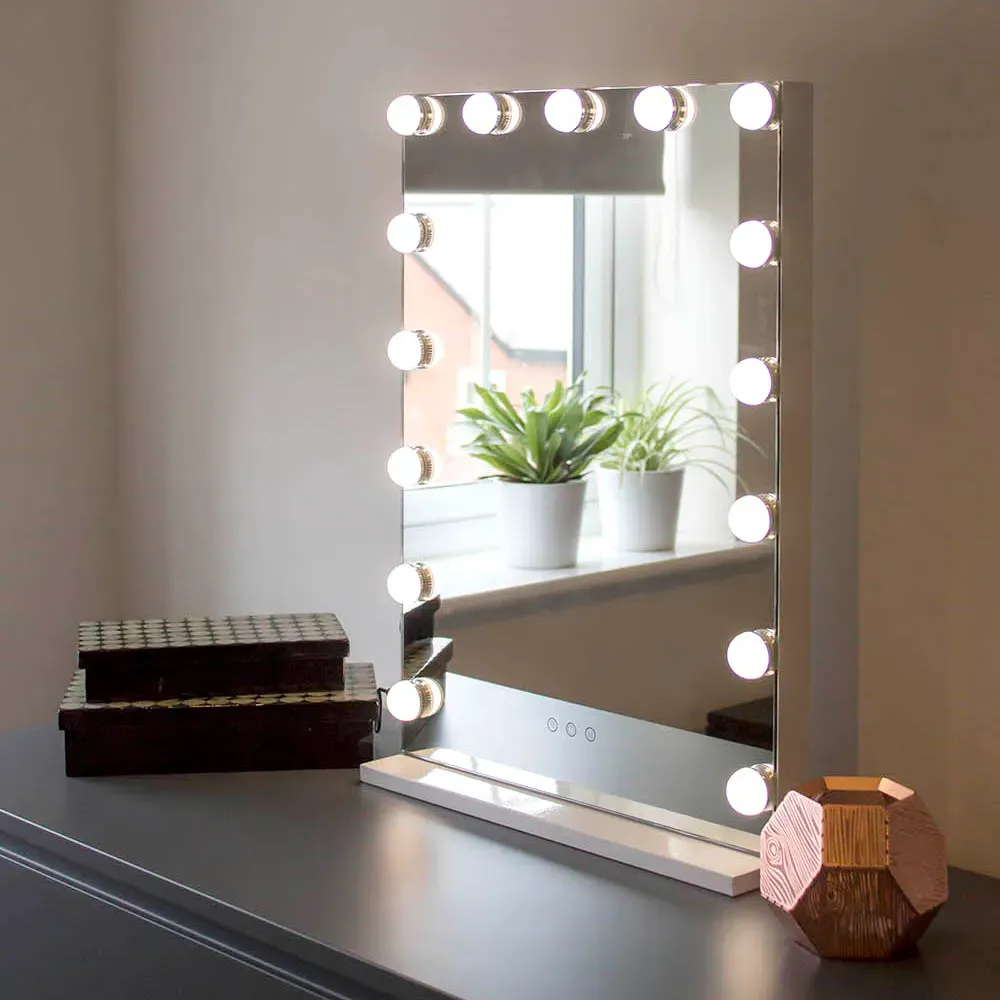 Make a stunning combination of old-school Hollywood glamour and modern technology with Jack Stonehouse Veronica Hollywood Mirror. It features a tabletop design inspired by the iconic mirrors found in Hollywood dressing rooms. Complete with nine long-lasting LED globe bulbs - the mirror radiates brightness and even illumination. With easy-to-use touch buttons, you have total control over the luminosity of the mirror, allowing you to create the perfect lighting for your beauty routine. The mirror also has a smart memory function that remembers your last lighting setting. It also comes with three colour temperature modes (cool, daylight, and warm lighting) and a dimmer button to adjust brightness. Additionally, the mirror tilts up and down, allowing you to set the perfect viewing angle. Made with a lightweight and durable white metal frame and base, the Veronica mirror is a glamorous addition to any dressing table, vanity top, or makeup station. It plugs into a socket via a 2m cable, eliminating the need for mains wiring. The mirror also features a portrait design with the plug located at the rear of the mirror panel. And for peace of mind, it comes with a 12-month manufacturer's warranty. Experience the beauty and functionality of the Veronica Hollywood mirror and elevate your beauty routine to the next level.