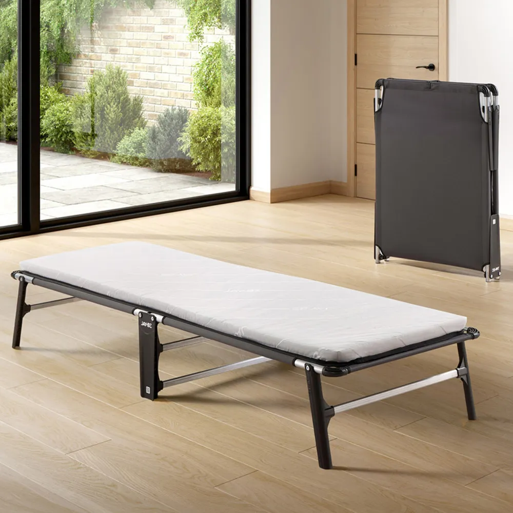 Get ready to enhance the comfort in your rooms with the Jay-Be LE59 Single Lite Folding Bed with e-Fibre Insulator Pad. This folding bed is ideal for accommodating guests and is made with modern materials. It's super portable and perfect for use in small spaces, as you can unfold comfort on demand. Its J-grip anti-tip legs provide six-point contact for enhanced stability, while the Mono-Tex platform base, topped with the e-Fibre insulator pad, offers support and comfort all night. This UK-made bed is great for camping and sleepovers and exceeds internationally recognized safety and quality standards.