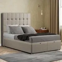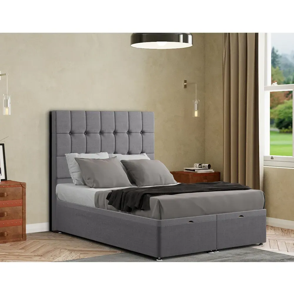 The Venezia Ottoman Bed combines compact design with practical storage, featuring a gas lift mechanism for easy access to the space beneath. Its floor-standing headboard with button tufting adds visual interest, while the linen upholstery provides a refined finish. The end-lift construction suits smaller spaces, and the robust frame ensures dependable support. Mattress sold separately.