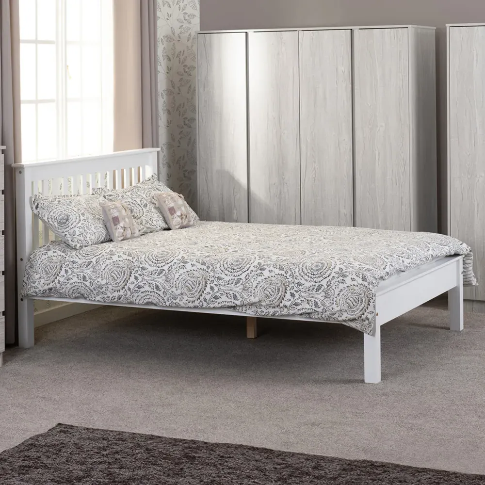 The Monaco Low End Bed Frame offers a minimalist design with its low foot end construction that creates an open, spacious feel. Its sturdy frame provides excellent support with wooden slats, while the vertical slatted headboard adds visual interest. The grey and oak effect finish brings warmth and sophistication to any space, and the durable construction ensures long-lasting comfort and stability.