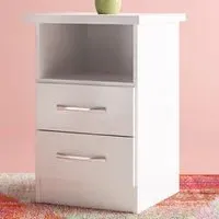 The Nevada bedside table features two drawers that provide ample storage for nighttime necessities, enhanced by metal handles and drawer runners for smooth functionality. Its robust construction ensures durability and long-lasting performance, while the black gloss finish adds sophistication to any space. The metal hardware components deliver reliable operation and contribute to the table's refined appearance.