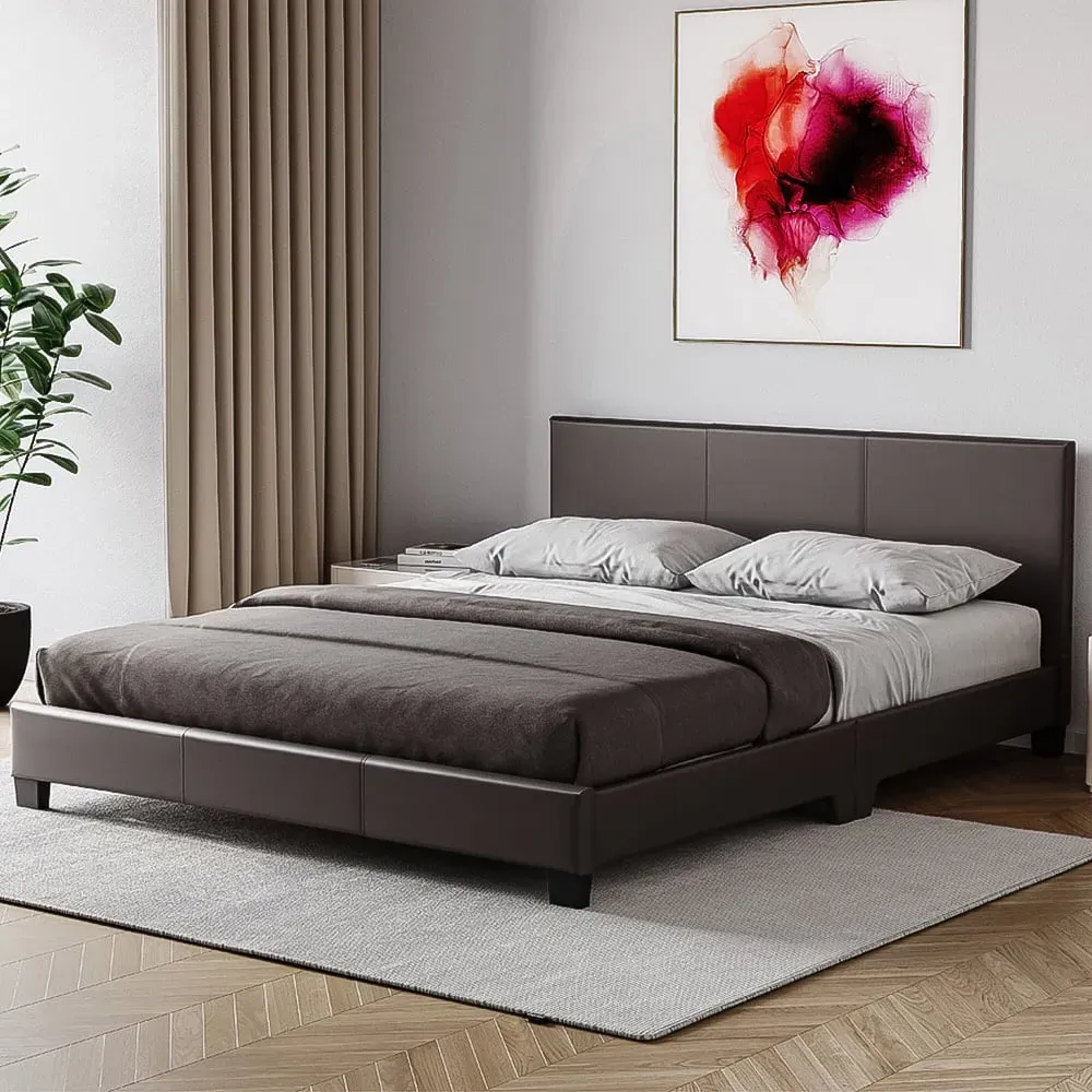 Introducing the exquisite Vida Designs Lisbon Single Brown Faux Leather Bed, a perfect blend of style, comfort, and durability. Upholstered in luxurious faux leather, this bed adds a touch of sophistication while providing a cosy and inviting sleeping space. Designed with a modern aesthetic in mind, it features clean lines and sleek finishes that effortlessly elevate the overall look of your bedroom. The smooth and supple faux leather upholstery adds a touch of luxury and offers a comfortable surface to lean against while enjoying your favourite book or movie. Equipped with a sturdy slatted base, this bed provides excellent support and ventilation for your mattress, ensuring a restful night's sleep. Also, the slatted design allows for proper airflow, keeping your mattress fresh and prolonging its lifespan. Crafted with quality materials and attention to detail, the bed offers both style and durability. Plus, its low-profile design makes it easy to get in and out of bed. Please Note: This item requires self-assembly with easy-to-follow instructions provided. The actual colour of the product may vary slightly as your screen display setting and lighting with your home environment may differ from our own. Weight Limit: 100kg