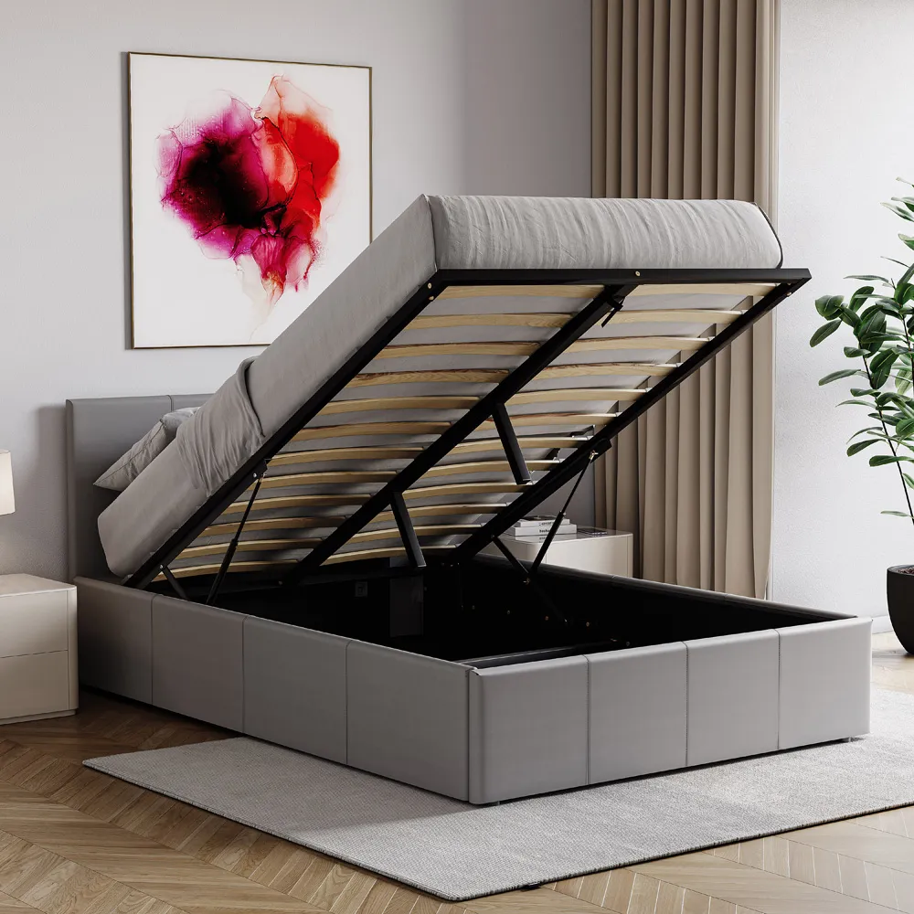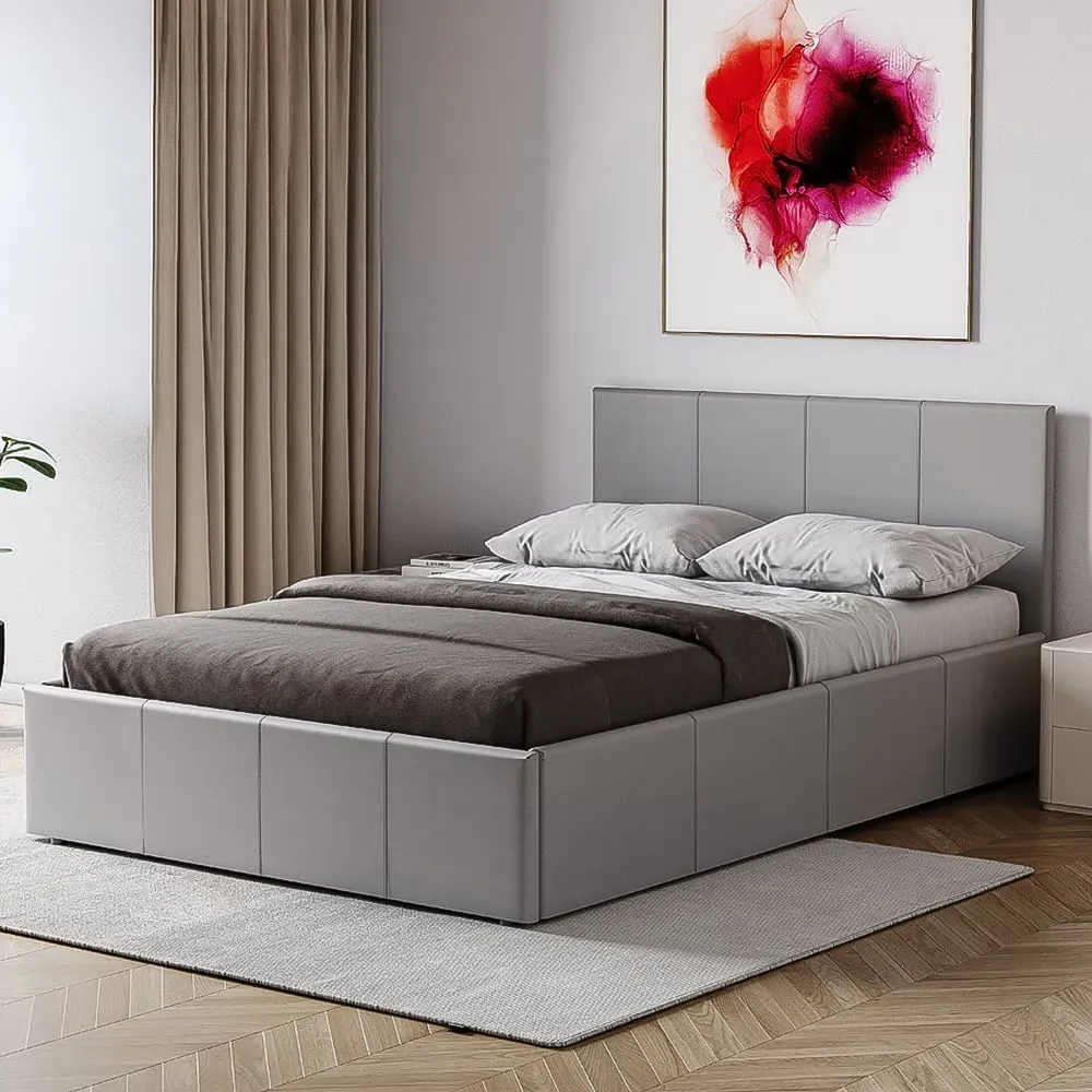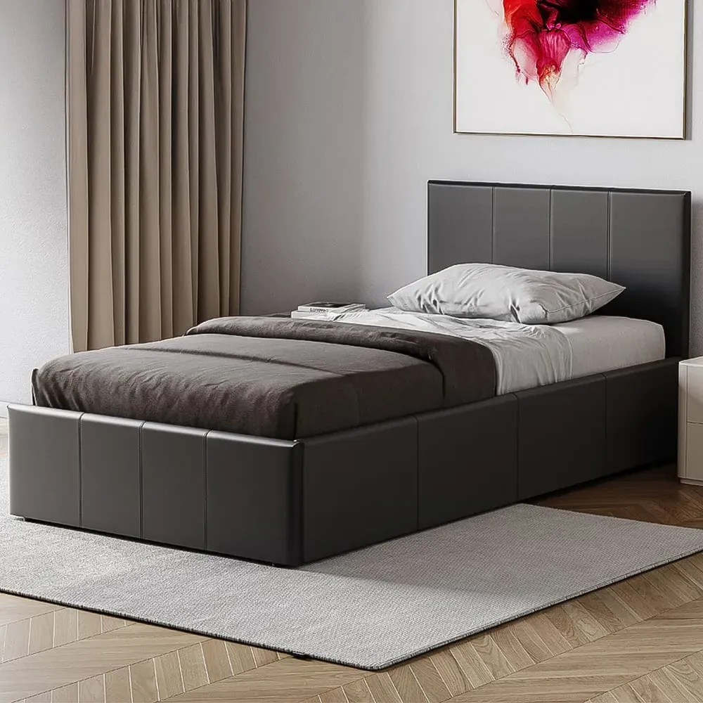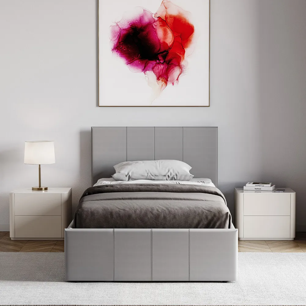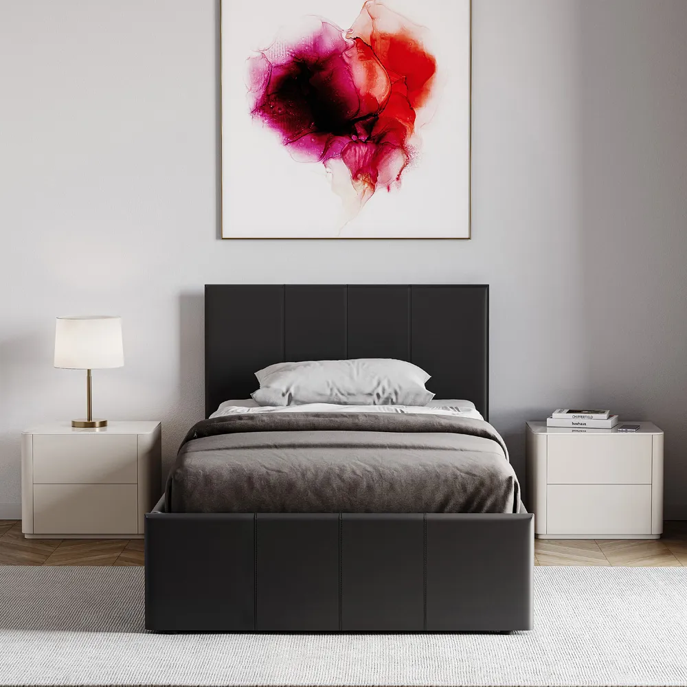 The Lisbon bed frame offers comfort and sophistication with its faux leather upholstery. Its slatted base provides excellent support and ventilation for your mattress, while the smooth upholstery creates a comfortable surface to lean against. The low-profile design makes it easy to get in and out of bed, and the sturdy construction ensures long-lasting durability.