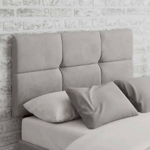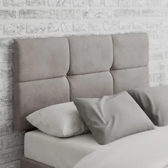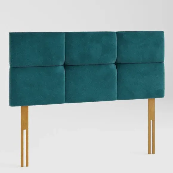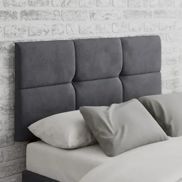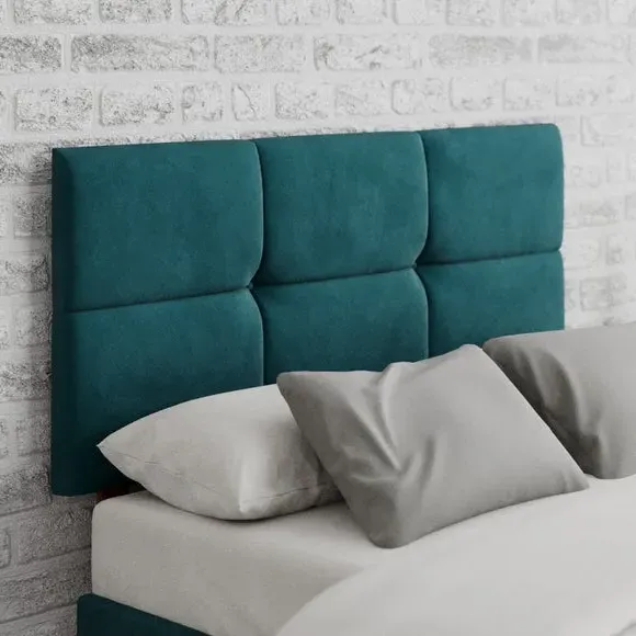 * Manufactured in the UK* Contemporary geometric headboard design* Hand upholstered with deep padding* Solid mahogany struts* 60cm headboard panel height* Compatible with standard size UK bed bases and divans Give your bed a sumptuous look as this headboard has been crafted using a plush velvet material. The Caine Fabric Headboard features a deep padded finish with a clean modern design. The headboard is sure to complement your home décor whether that be traditional or contemporary. With a choice of colour options, you are sure to find the best one to suit your bedroom style. Handcrafted, this headboard features a 15mm thick wooden panel that has been supplied with strong mahogany struts to ensure sturdiness once installed. You can sit up and read a book in bed with comfort as the headboard has a comfortable 40mm deep polyester padding. The hardwearing, supple fabrics are designed to withstand long term use. Aspire take great care in constructing their headboards from start to finish. They take pride in their precision work which shows in the fabulous finish and intricate design details of their headboards. The headboards are available from single to super king sizes, and it is suitable for all standard bed bases.