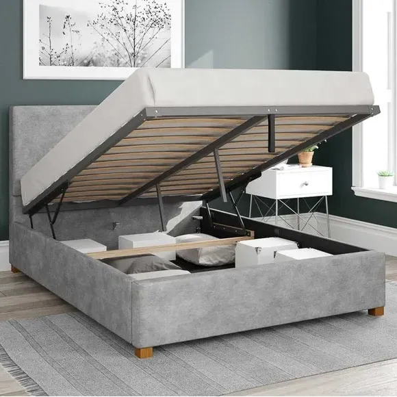* Linen fabric ottoman bed* Plain headboard design* Minimalist Garland range* Hand upholstered with deep padding* Large storage area with fabric dust protection sheet* Hands free access to storage (mattresses up to 60kg) - mattress not included* Solid hardwood feet* Manufactured in the UK Cool and contemporary, this minimalist styled ottoman bed from the Garland range brings the perfect blend of style and functionality to your bedroom. Manufactured in the UK, this bed is hand upholstered with a linen fabric in a range of colours, includes a plain headboard design and deep padding for added comfort. It comes with quality spring slats that provide added support for a peaceful night's sleep and the large storage area is designed to provide ample space for all your bedding and accessories. The ottoman design can be easily accessed with gas lift pistons, so once the mechanism is open it will hold in place and a fabric dust protection sheet is there to keep your belongings clean and tidy. Complete with solid hard wood feet to provide a stable foundation, they finish the look and ensure the bed remains sturdy and secure, while also adding a touch of elegance to the overall design.