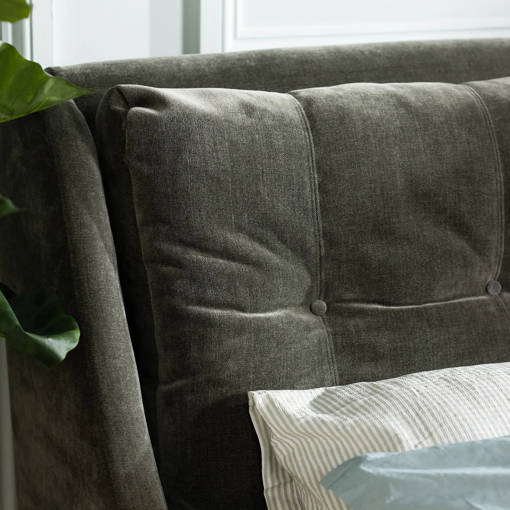 The Raul bed frame offers quality construction with its hardwood frame and composite fibre headboard cushion. Its sprung slatted base features a powder coated steel frame with beech wood slats, while the central rail adds stability. The upholstered frame combines traditional hardwood construction with expert screwing and gluing for superior durability.