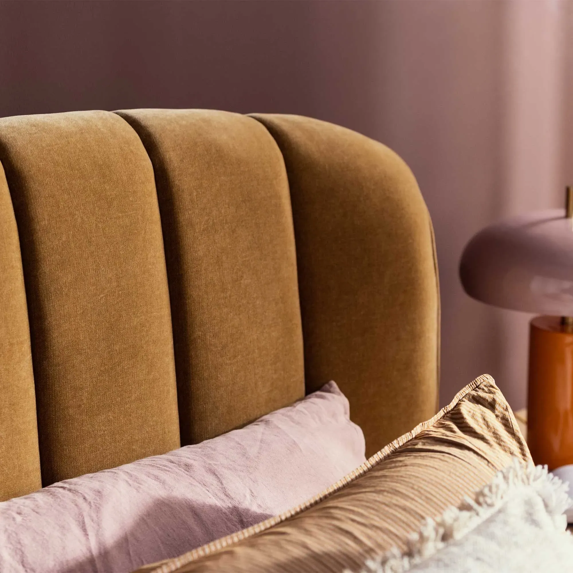 This Bed Frame Combines Eucalyptus Wood And Plywood Slats With Foam And Fiber Filling, Fabric Upholstery, And Rubberwood Feet, Offering A Perfect Blend Of Durability, Comfort, And Contemporary Style. Reyes Double Bedframe 4Ft6, Brown Fabric | Barker & Stonehouse